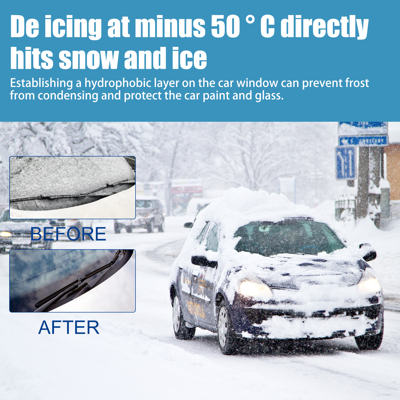 我们的汽车除雪剂含有去离子水、氯盐、生物多元醇。它可以快速融化车窗上的霜、冰、雪,解冻钥匙孔、雨刷、天线等结冰,喷涂后不会粘在玻璃上。可以轻松擦拭干净,不遮挡行车视线。它的使用方法很简单:首先调整喷嘴开关至所需模式,使用前将产品摇匀,之后按下喷嘴,喷在冰雪上,等冰雪融化后,再用抹布擦拭干净即可。使用后快速去除车上积雪,在汽车表面形成疏水涂层,防止雪花附着,让你不再为冬天的雪所困扰。