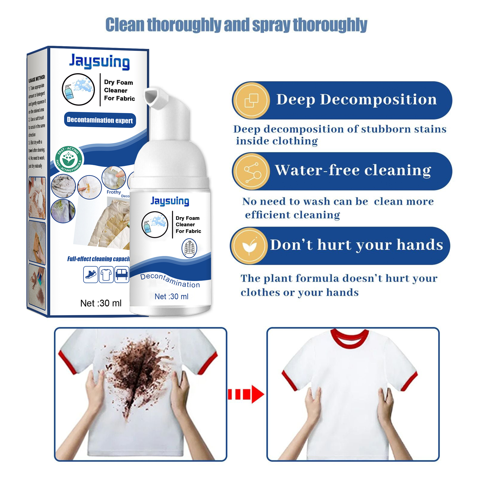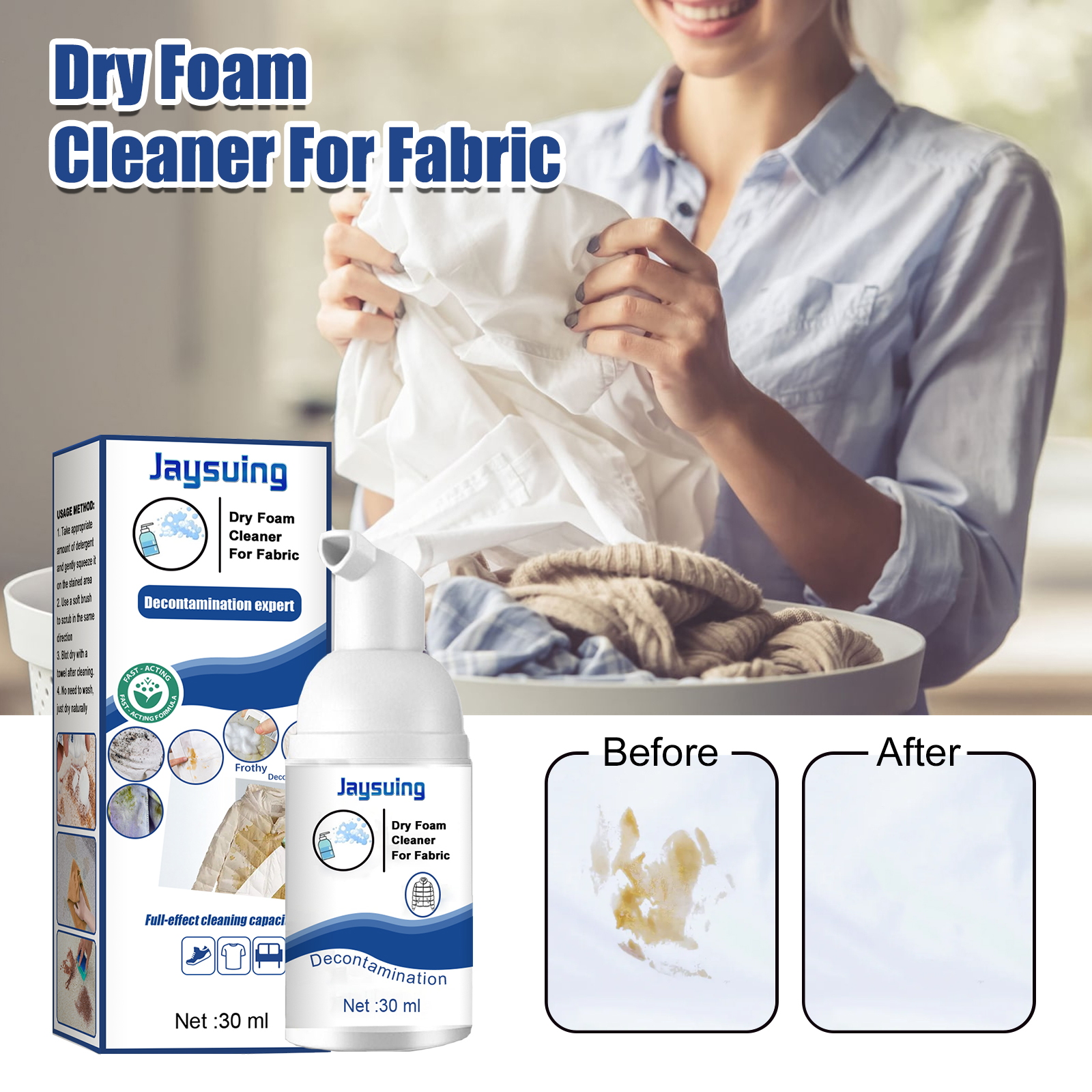 Jaysuing Foam Cleaner, Cleans Down Jackets Carpet Stubborn Stains Yellow Stain Clothes Decontamination Dry Cleaner