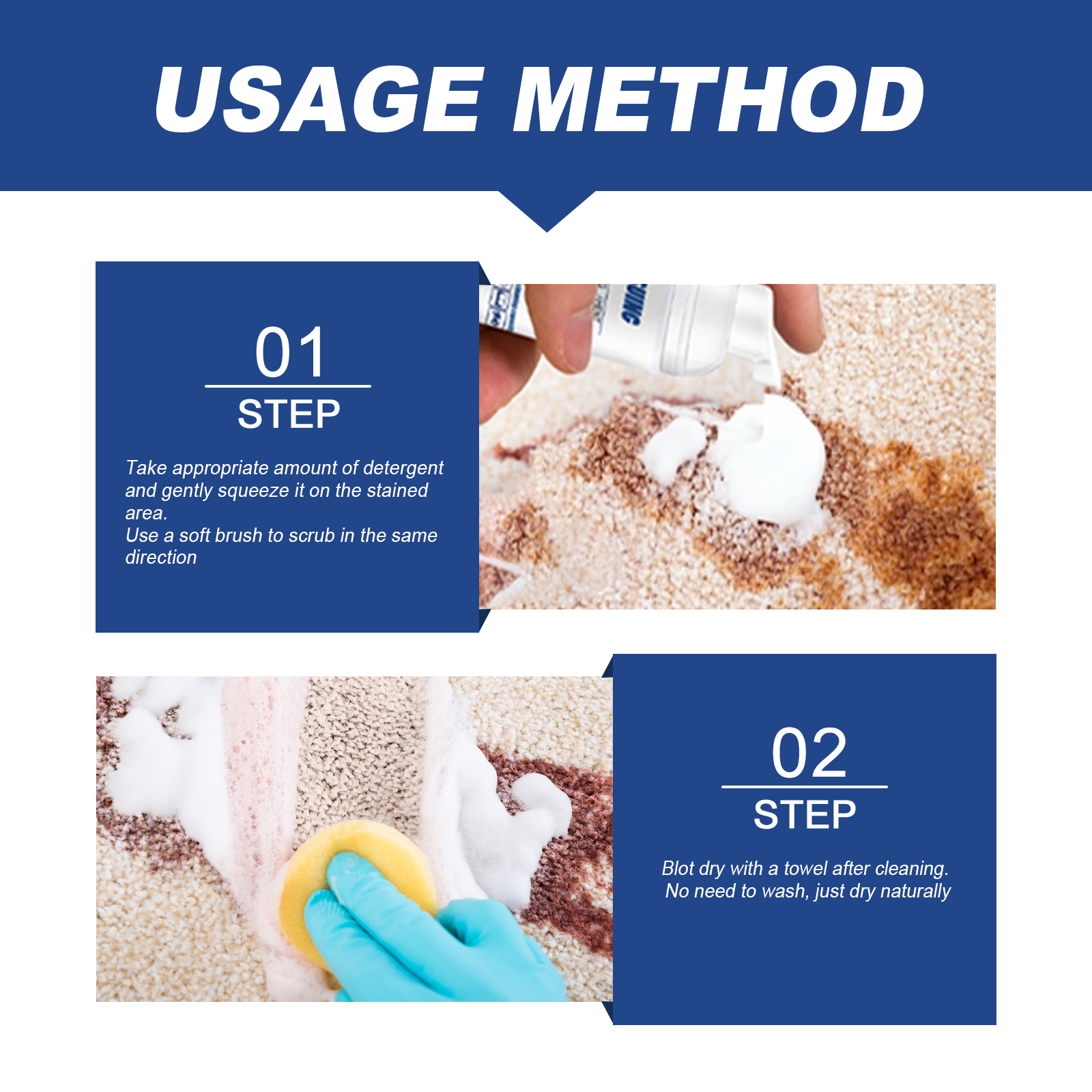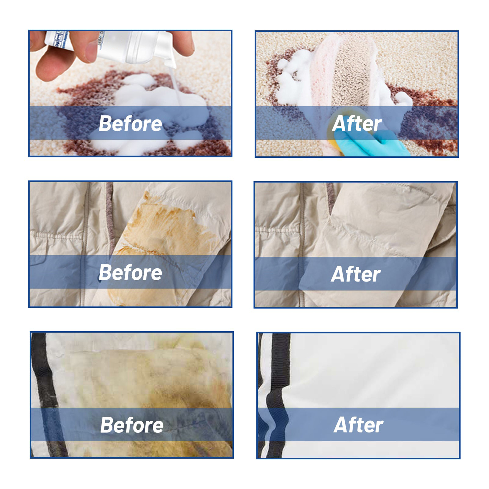 我们的泡沫清洁剂含有去离子水、小苏打、柠檬提取物。它可以深层分解,衣物内顽固污渍的深度分解;无水的清洁,无需清洗即可清洗,更高效的清洗;彻底清洁并彻底喷洒,植物配方不会伤害你的衣服和手。它的使用方法很简单:取适量清洁剂轻轻挤在污渍处,用软毛刷沿同一方向刷洗;清洁后用毛巾吸干。无需清洗,自然晾干即可。泡沫清洁剂强力清除顽固污渍,黄渍,衣物清洁的好帮手,各种难洗的污渍,一喷就干净了。