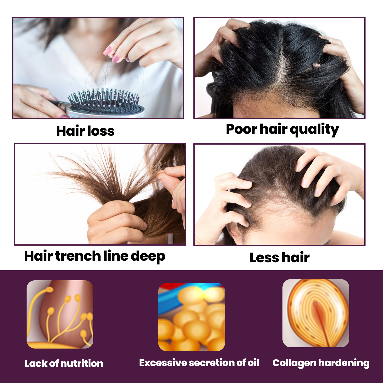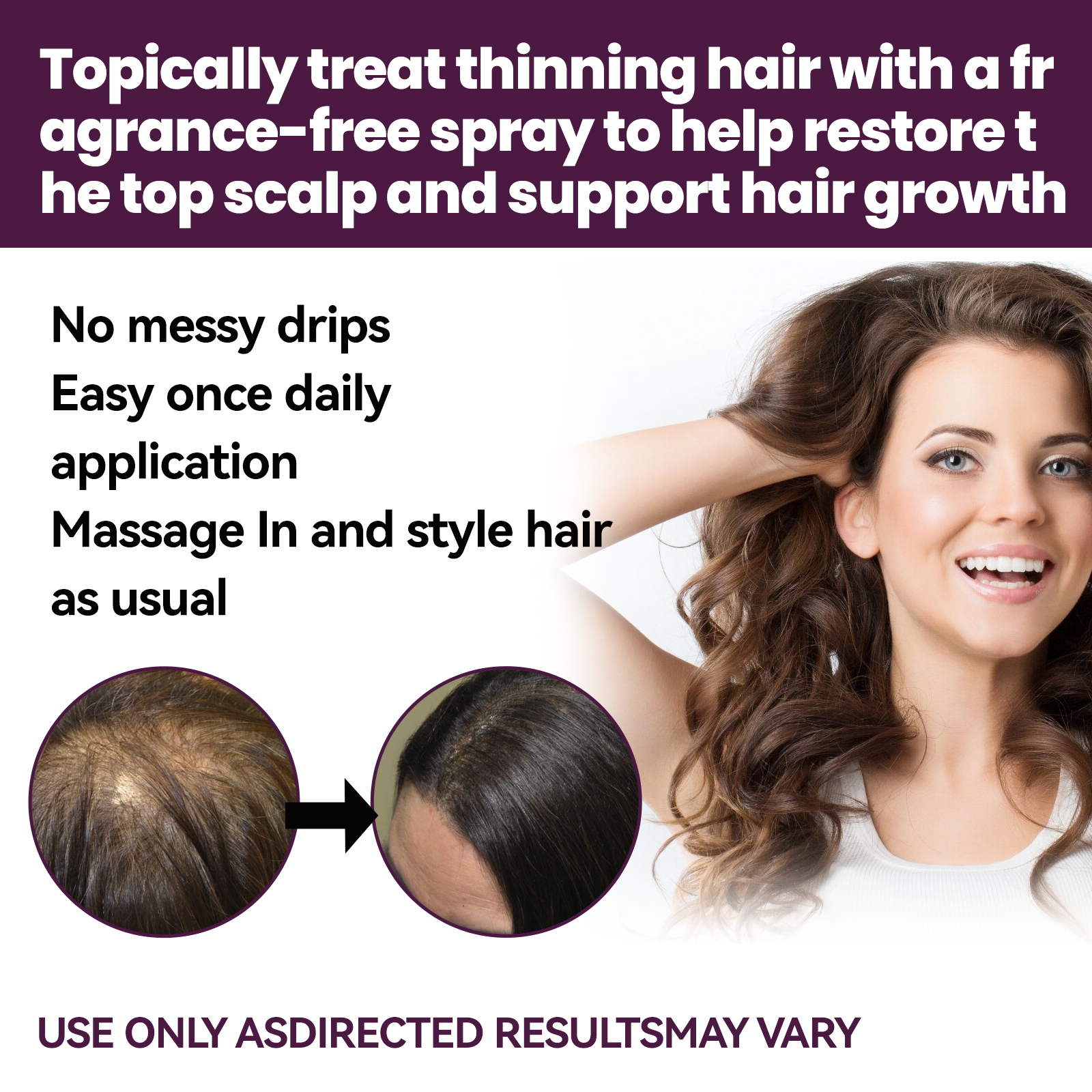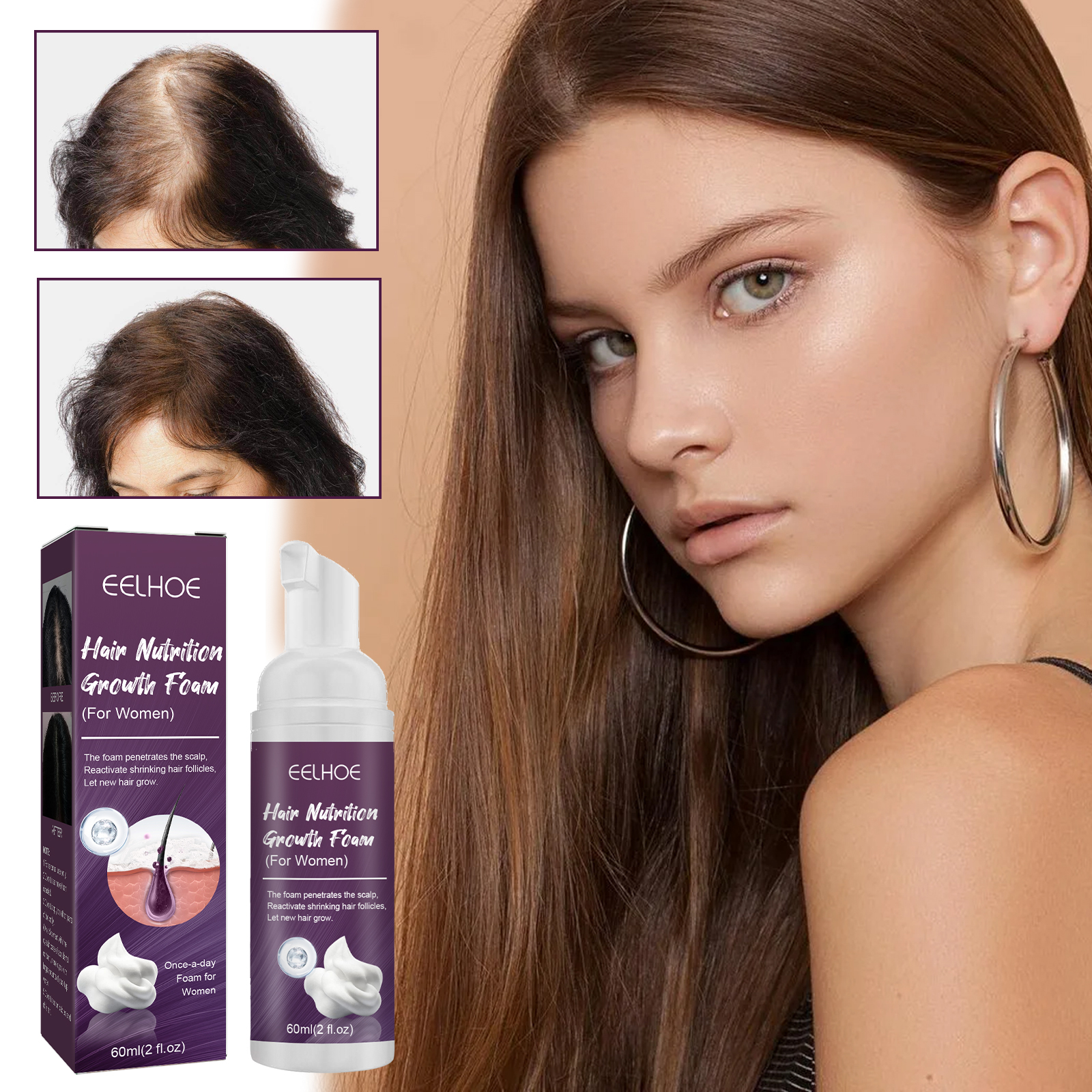 我们的泡沫柔顺发丝呵护含有生物素、人参根提取物。它可以使萎缩的毛囊恢复活力,帮助维持头发密度。它的使用方法很简单:洗净并吹干头发。把头发分开,把泡沫按摩到头皮上,而不是头发上,直到所有的脱发区域都被覆盖。在头发稀疏的头皮上按摩。头发乌黑浓密,修复毛囊,促进头发生长。
