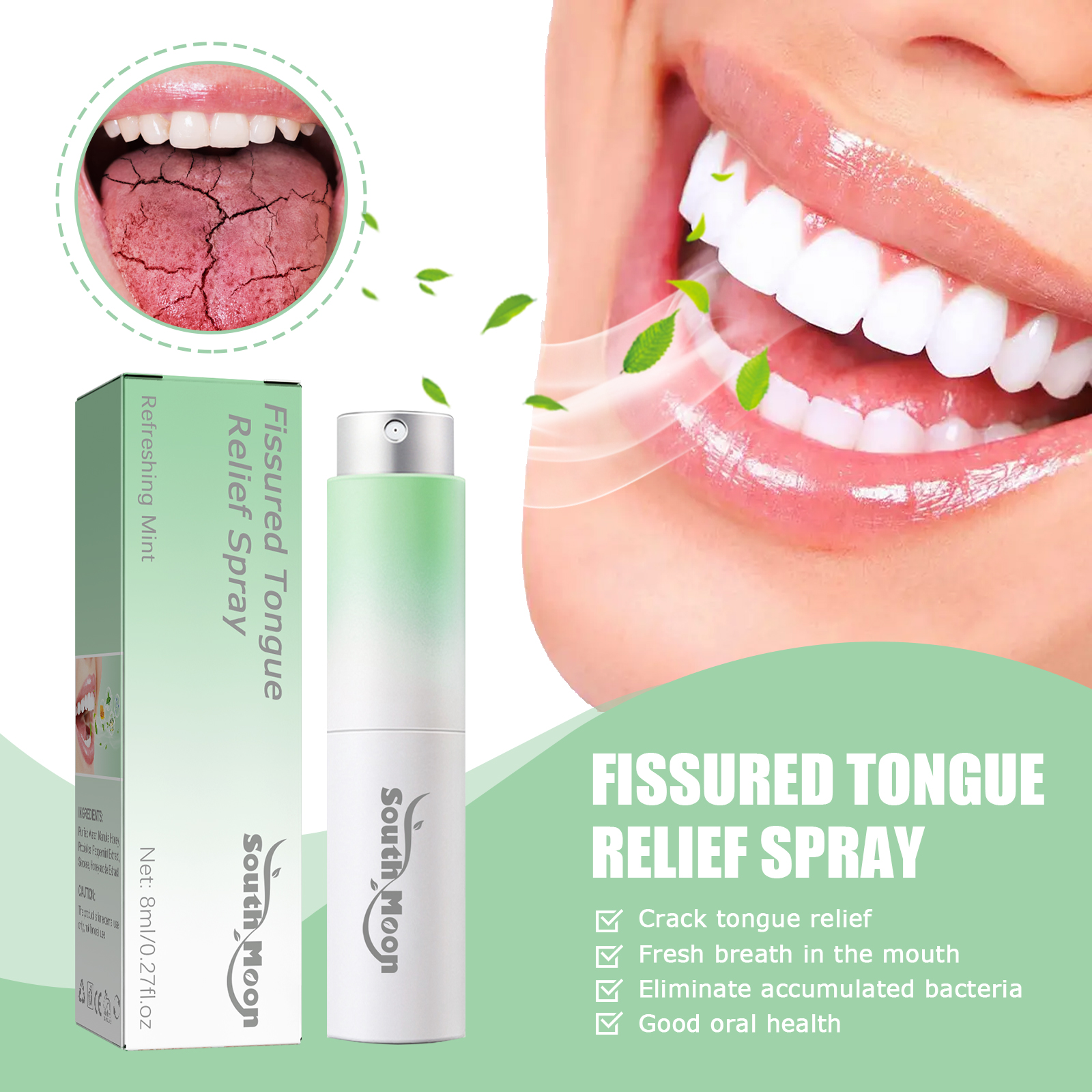 South Moon Fissured Tongue Relief Spray, Relieve Cracked Tongue And Fresh Breath Deodorizer Mouth Spray
