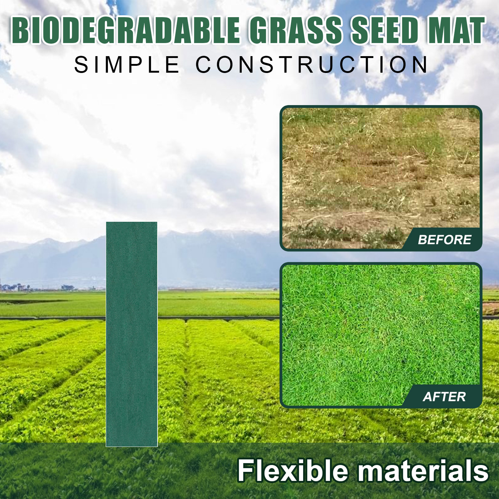 AMZ Garden Eco-Blanket, Biodegradable Seed Mat Garden Eco-Blanket Non-Woven Grass Seed Carpet