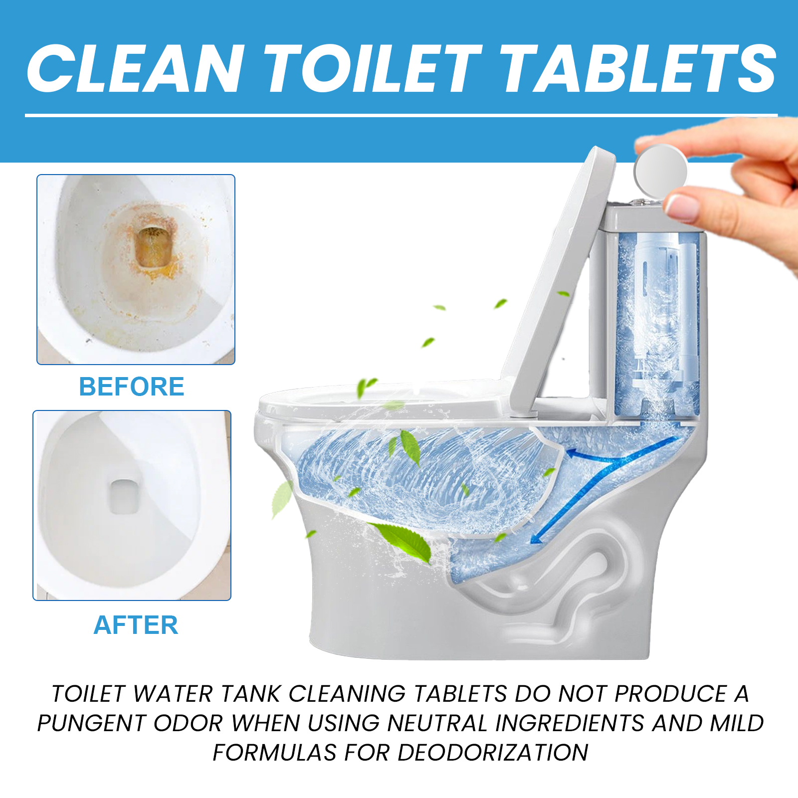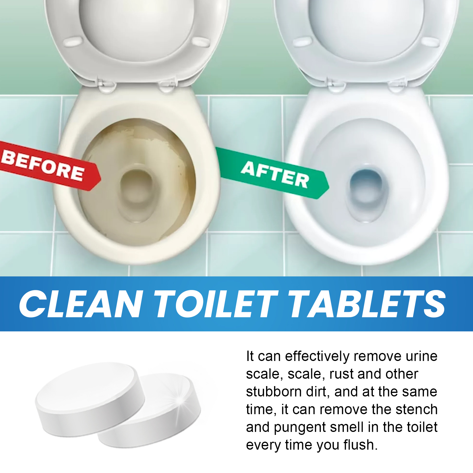 Jaysuing Toilet Cleaner Tablets, Toilet Deodorizing Removing Stains Cleaning Urine Stains Dirt Cleaning Toilet Tablets