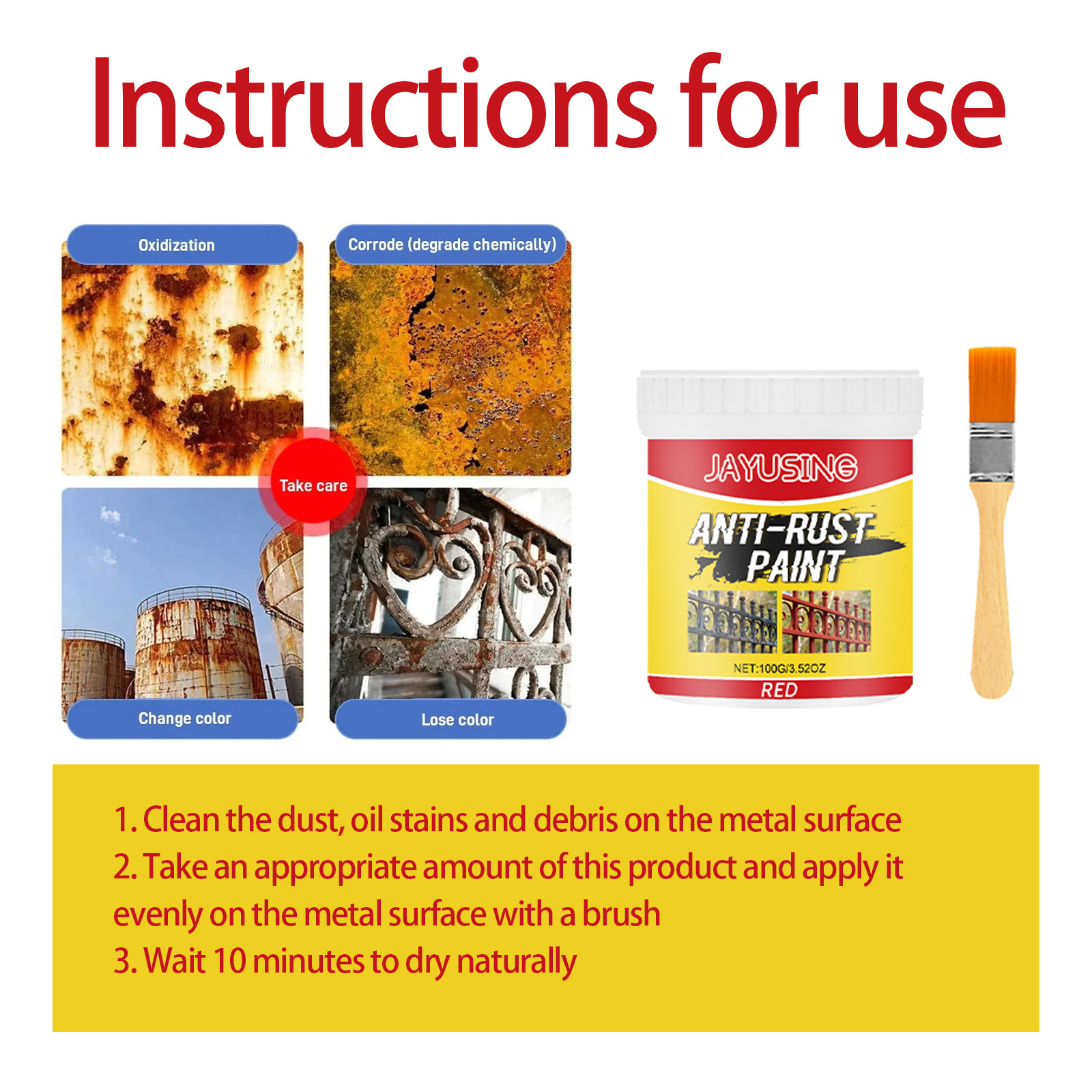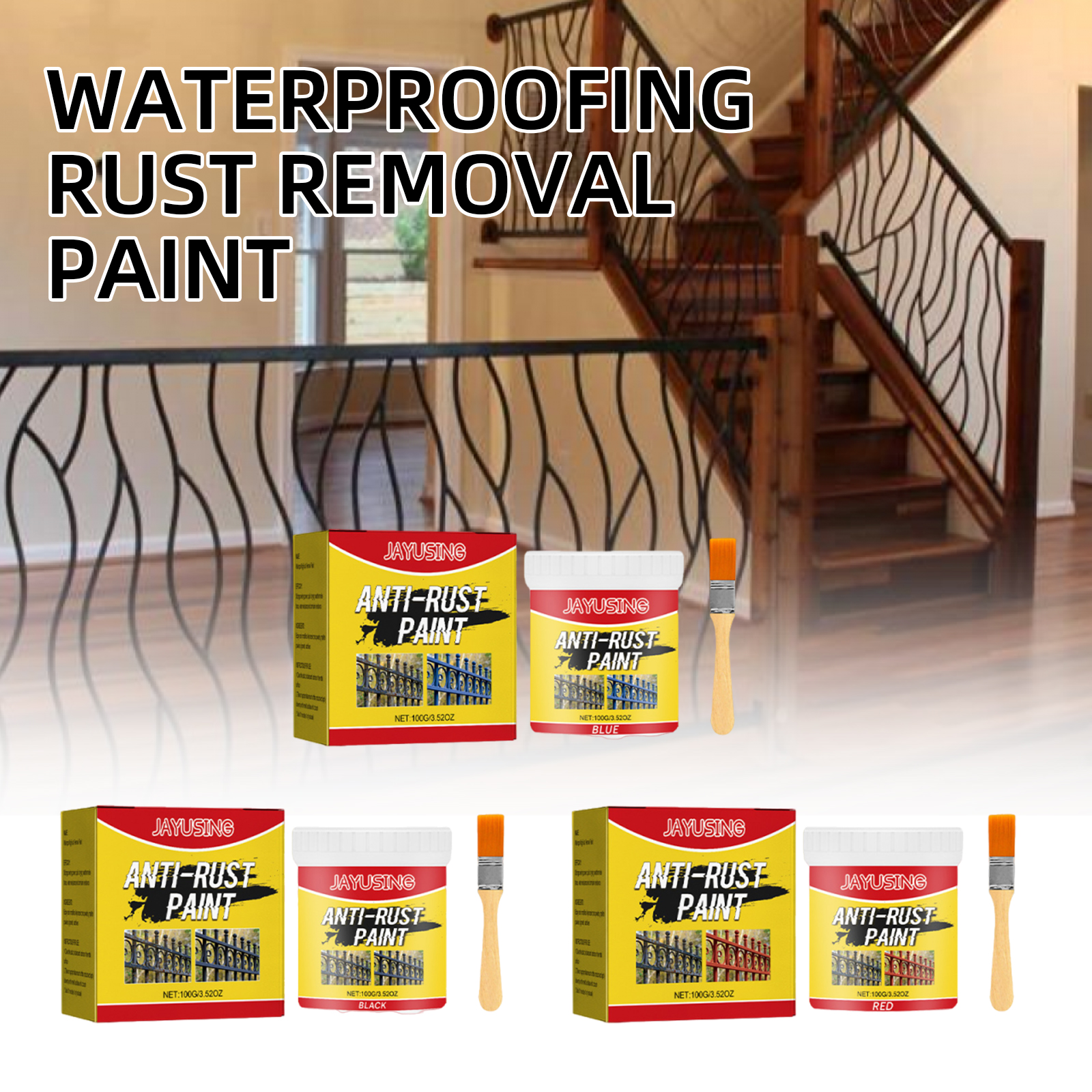 Jayusing Red Rust Removal Paint, Iron Door Railing, Metal Anti-Rust Cleaning And Renovation, Anti-Rust Coating Primer