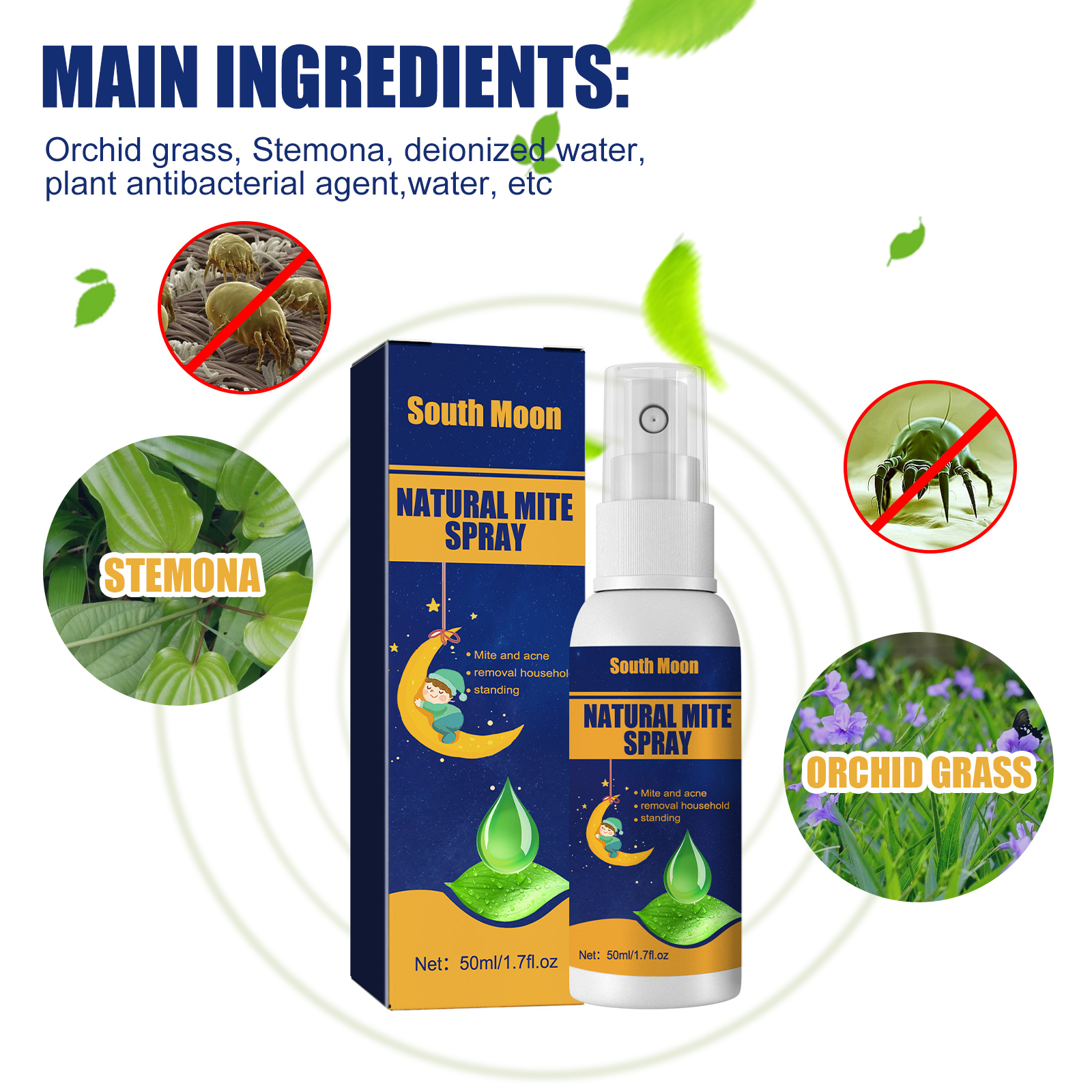 South moon Natural Mite Spray, Home Bedroom Sofa Quilt Cloth Removal Mite And Lice Egg Spray