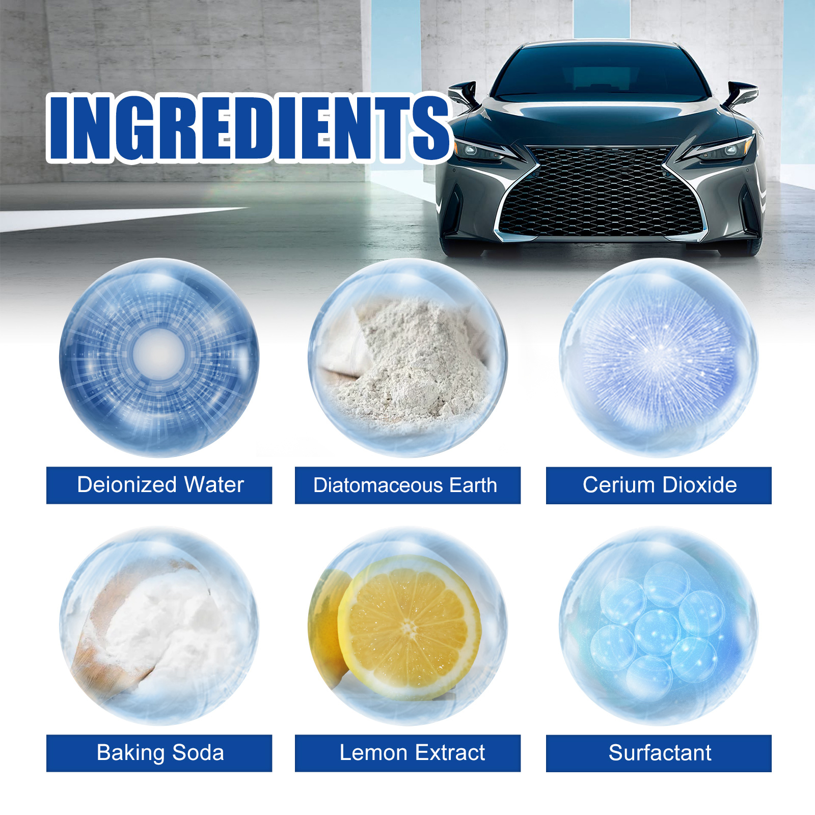 我们的玻璃油膜去除剂含有去离子水、表面活性剂、硅藻土。它可以快速清洁汽车玻璃,去除玻璃上顽固污渍,含有温和的磨料,可以深入清洁玻璃而不会刮伤它。它的使用方法很简单:首先清理玻璃表面的灰尘和杂物,取适量本品倒在布或海绵上,在玻璃上来回擦拭,最后用水冲洗干净即可。使用后可以深层对玻璃进行清洁,去除玻璃上的水渍和油膜,快速提高透明度,让玻璃变得干净有光泽。