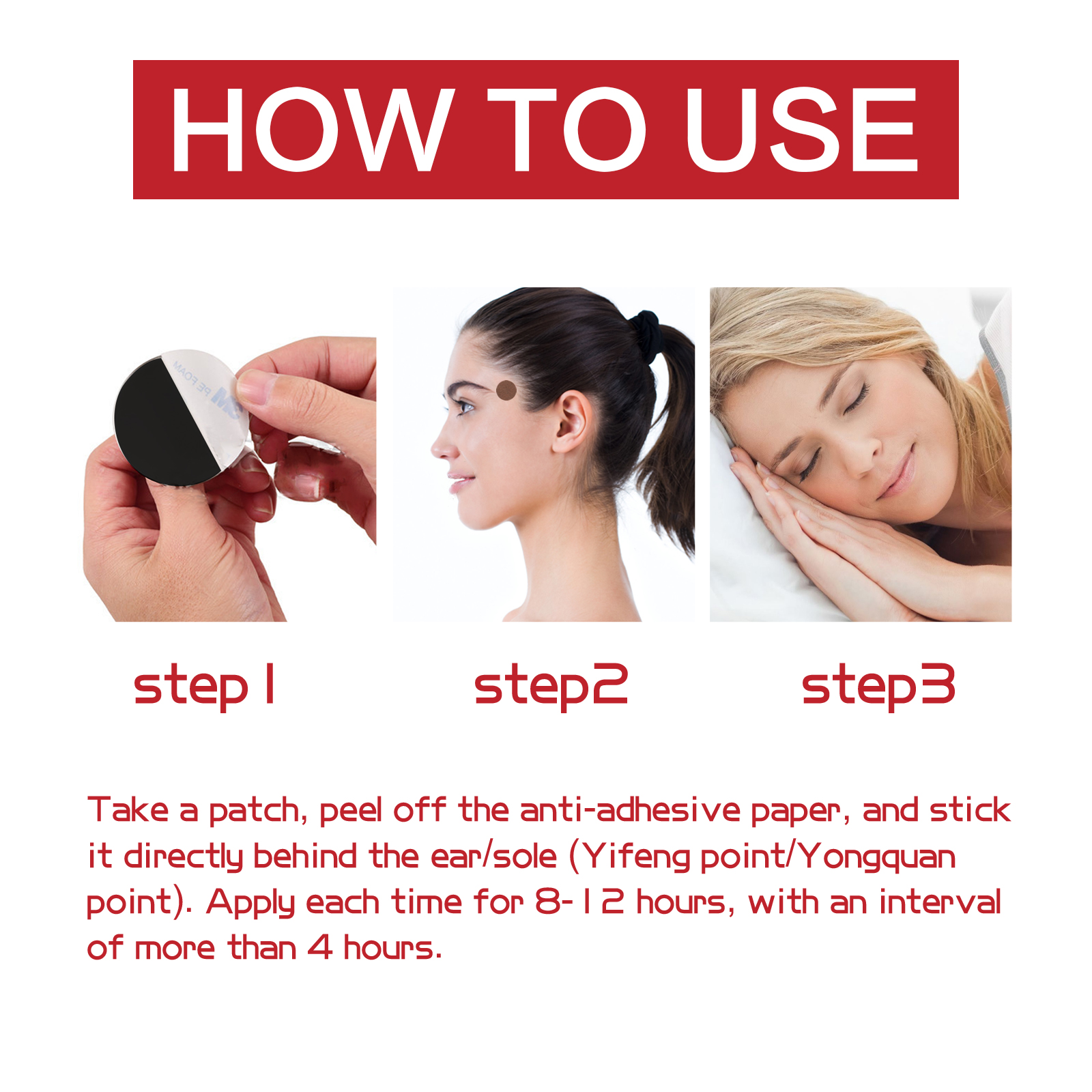 我们的头疼舒缓贴含有薄荷提取物、栀子花提取物、甘草根。它可以有效平缓头昏脑胀、舒缓头疼头晕等症状。它的使用方法很简单:取一块本品,撕下防粘纸,直接贴在耳后/脚底(易峰穴/涌泉穴),每次敷8-12小时,间隔4小时以上。可以预防和治疗原发性头部神经痛,包括偏头痛、紧张性头痛、丛集性头痛等。