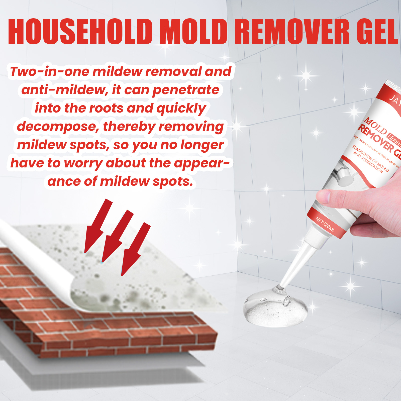 Jaysuing Mildew Removal Gel, Kitchen And Bathroom Walls Multi-effect Stain And Mildew Removal Household Walls Cleaning Cream
