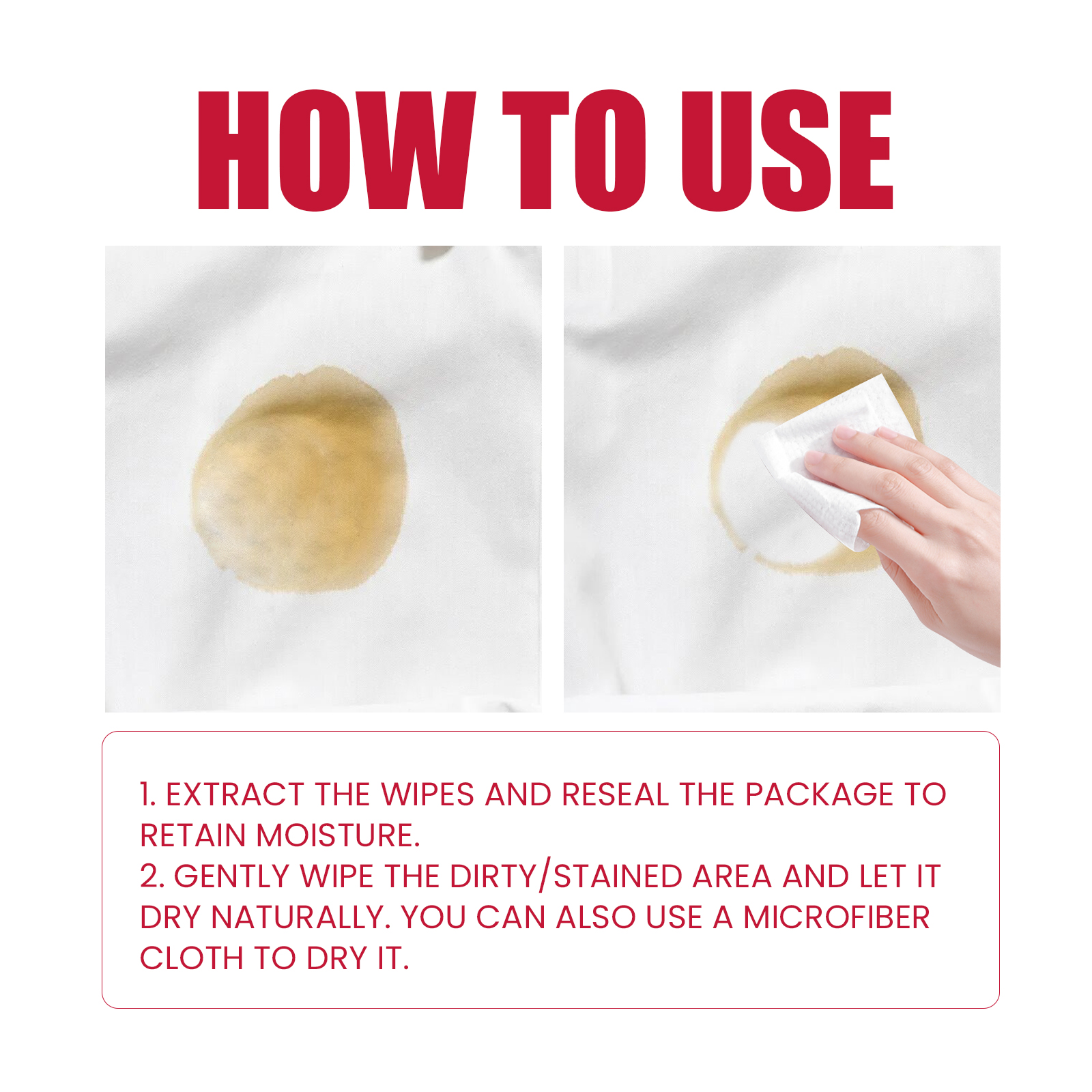我们的清洁衣物污渍含有葡萄糖酸钠、氢氧化钠、EDTA 二钠。它可以有效清洁衣服上的灰尘和污渍,持久留香,让你的衣服更加亮白。它的使用方法很简单:取出湿巾并重新密封包装以保持水分,轻轻擦拭脏/染色的区域,让它自然干燥,或者您也可以使用超细纤维布来擦干它。使用后能够去除衣服上的各种顽固污渍,让衣物焕然一新。