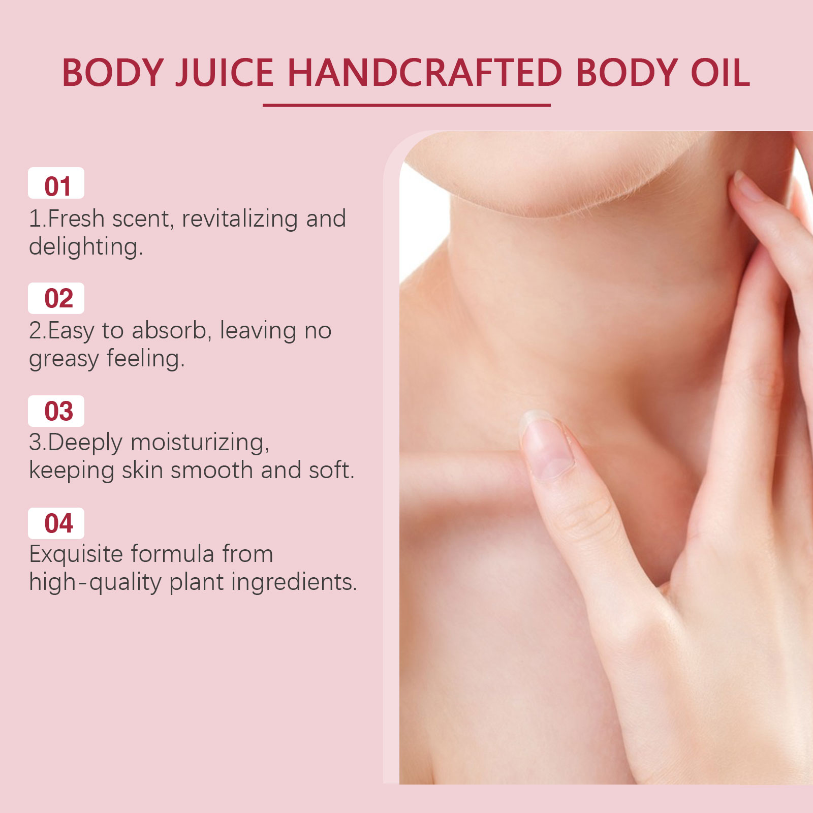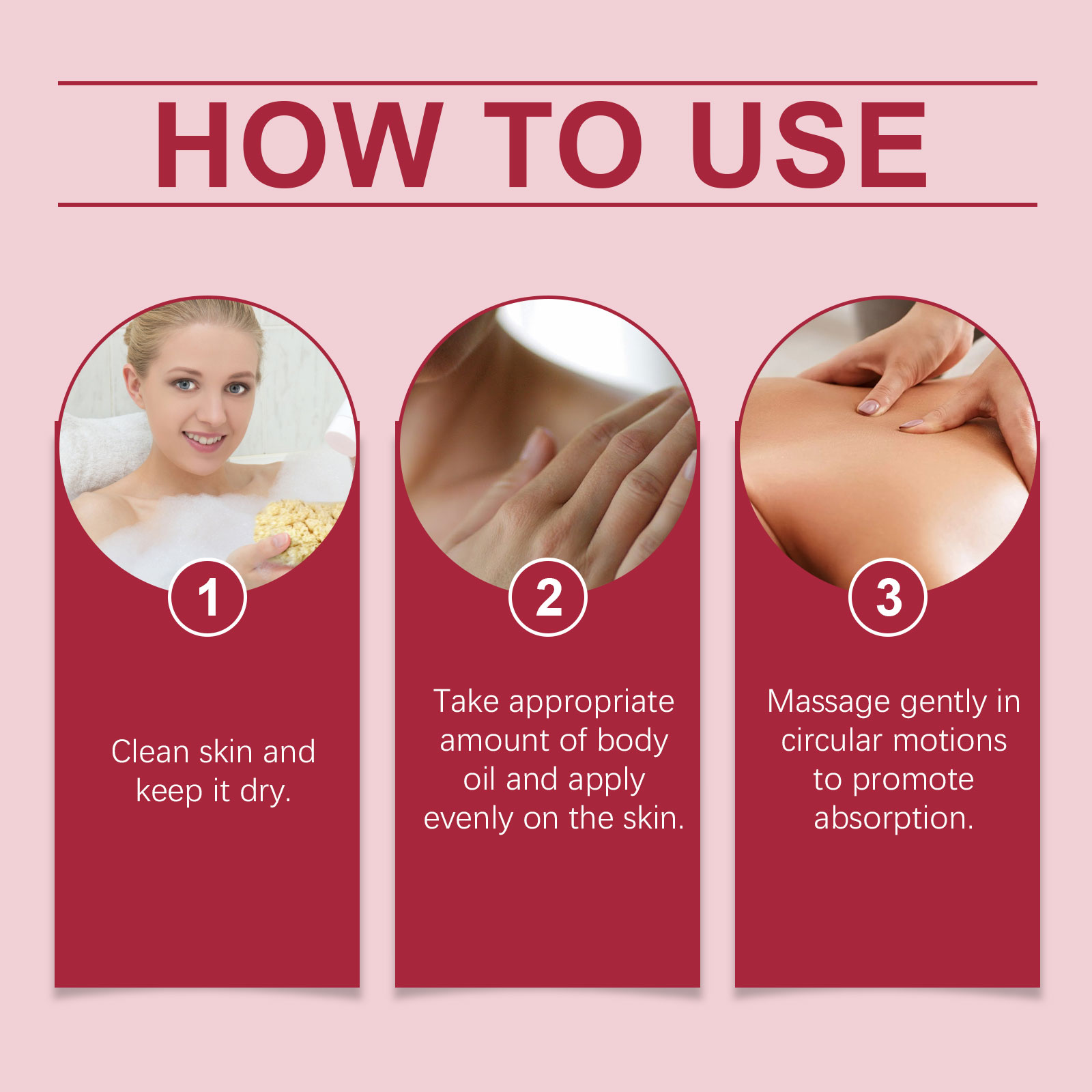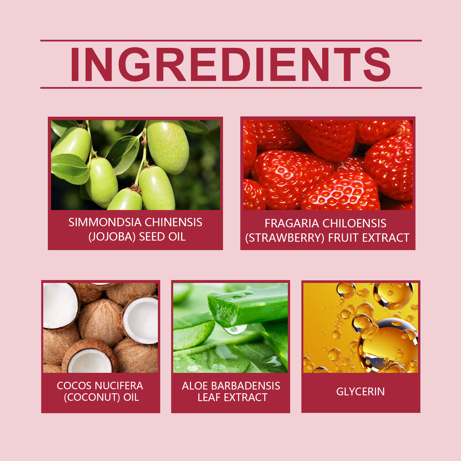 我们的草莓身体护理油含有椰子油、草莓果提取物。它可以为身体每一寸皮肤提供营养。适合所有肤质,温和护肤。它的使用方法很简单:清洁皮肤,保持皮肤干燥。取适量身体油均匀涂抹于肌肤上。以打圈轻柔按摩促进吸收。并且可以恢复肌肤的自然光泽,让肌肤焕发光彩。