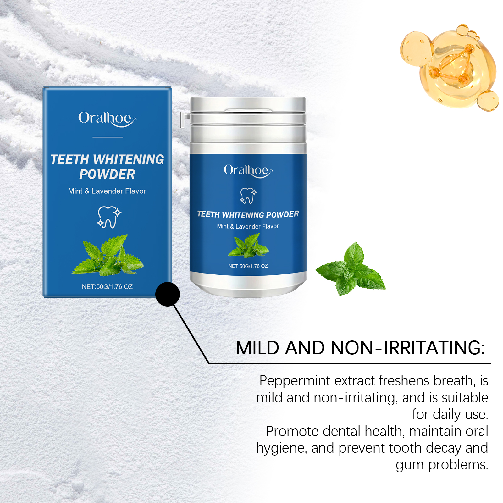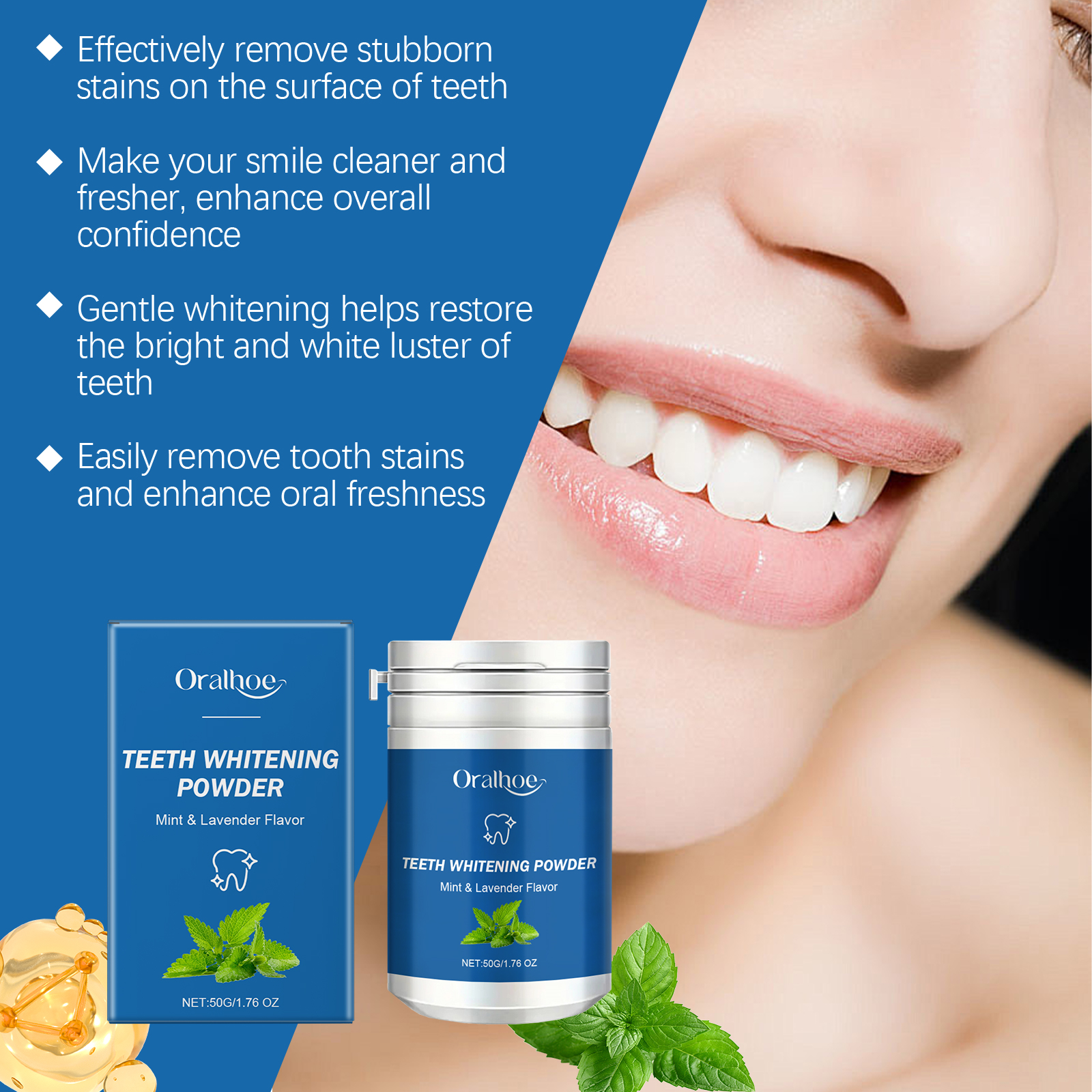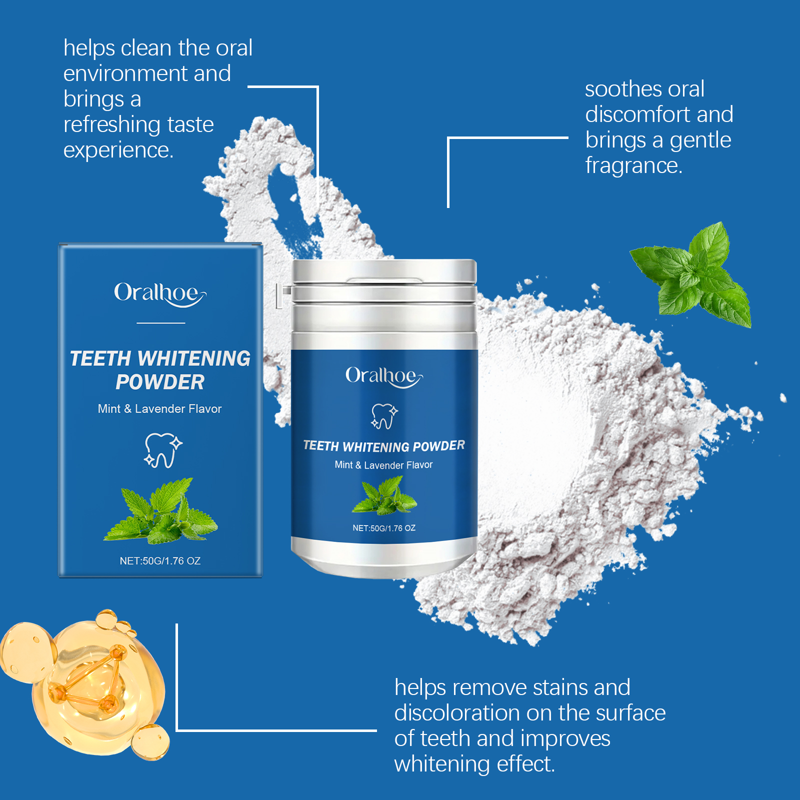 Oralhoe Dental Powder, Freshens Breath And Gently Cleans Teeth From Stains And Stains Lasting Glossy Dental Care