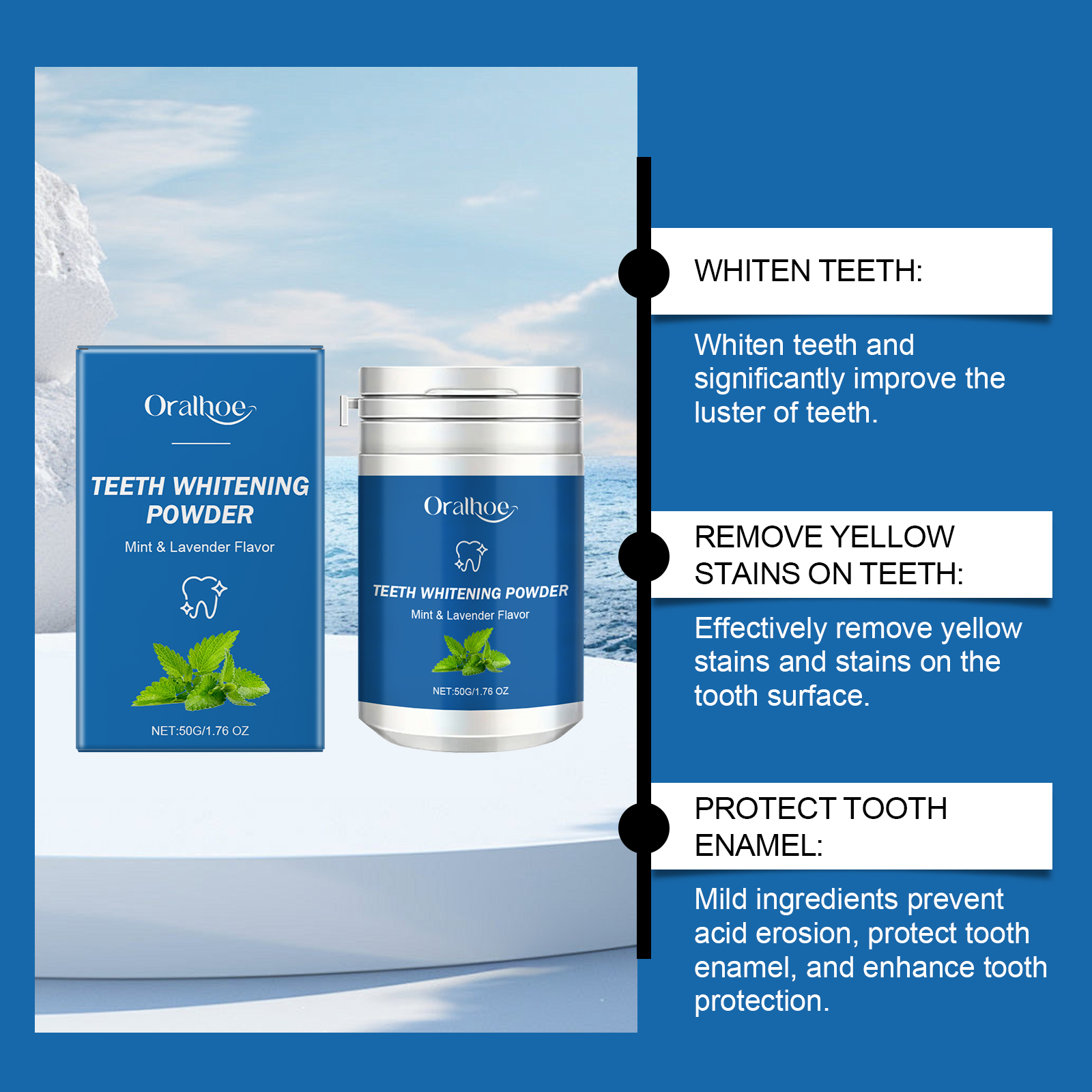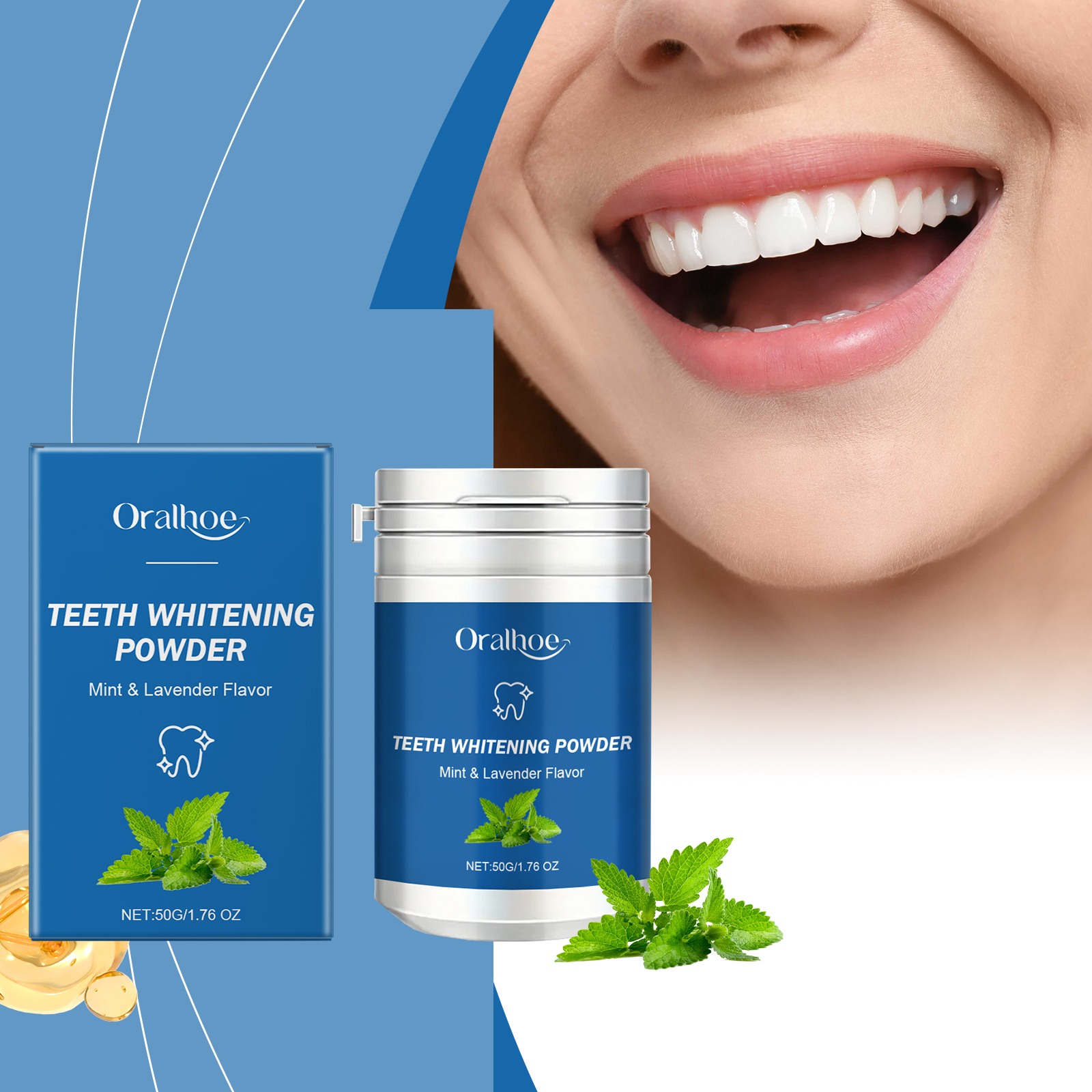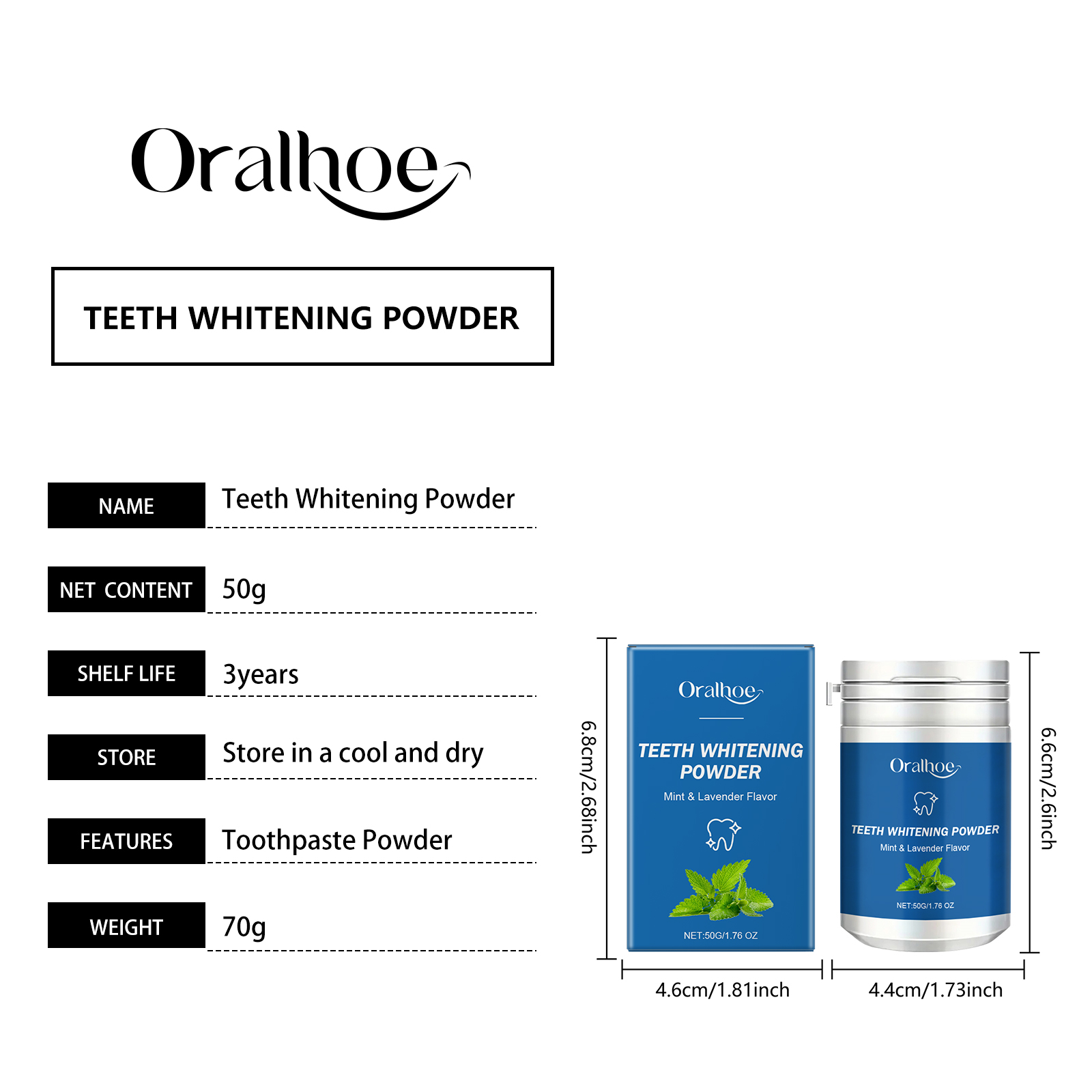 Oralhoe Dental Powder, Freshens Breath And Gently Cleans Teeth From Stains And Stains Lasting Glossy Dental Care