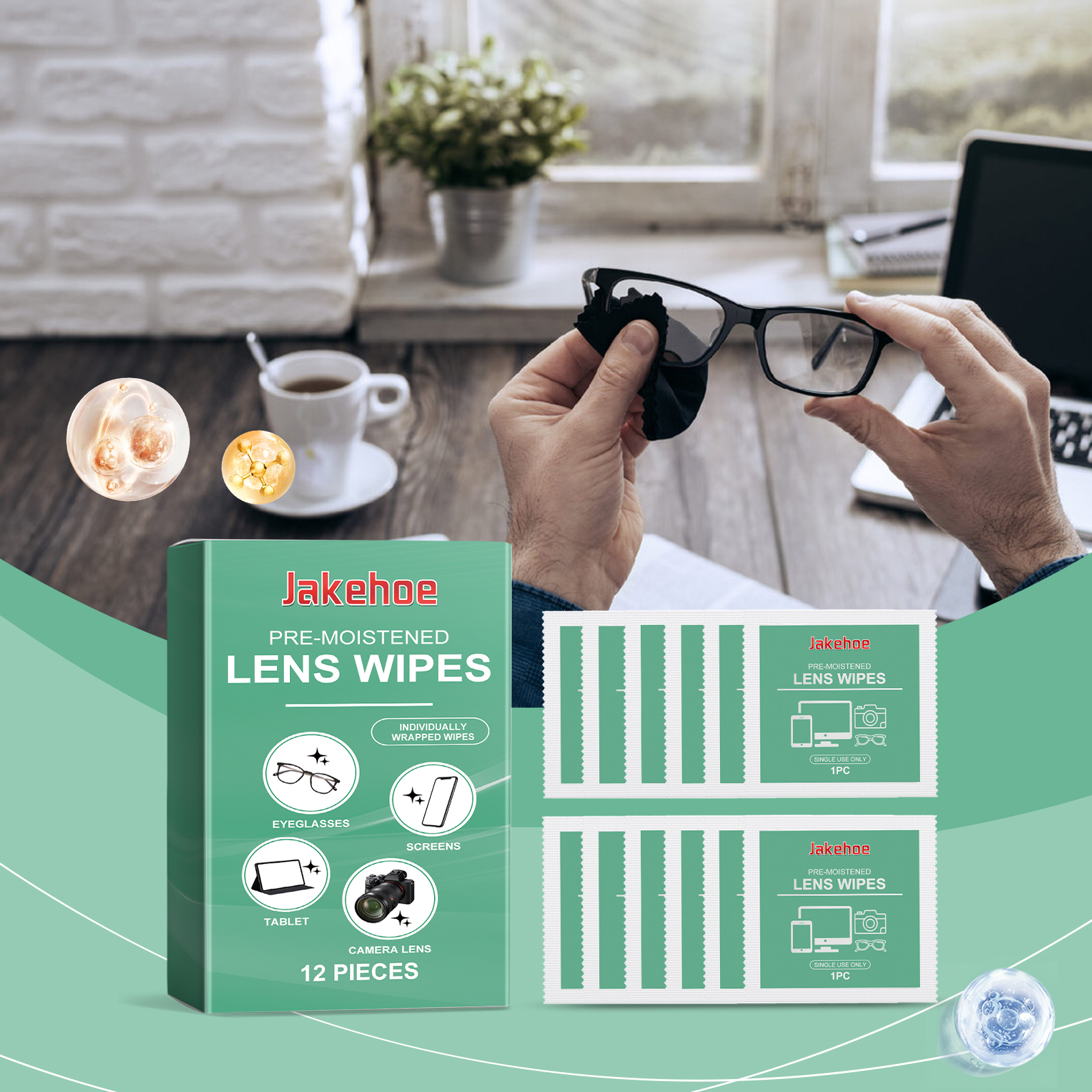 Jakehoe Lens Cleaning Wipes, Eyeglass Screen Wipes Individual Package Carry Cleaning Wipes With You