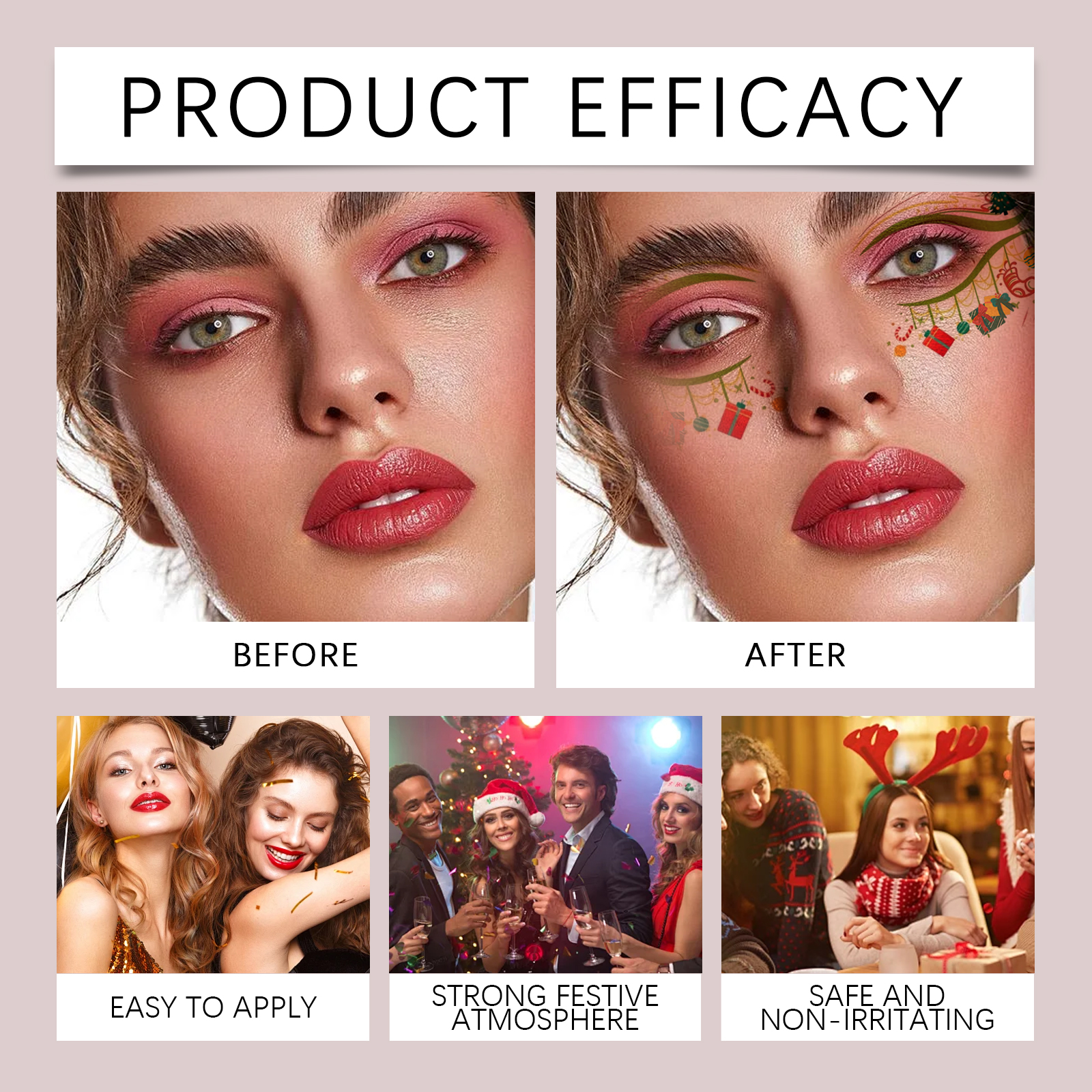 Eelhope Christmas Face Stickers, Christmas Face Tattoo Stickers Show Christmas Atmosphere Relaxed Fun Dress Up