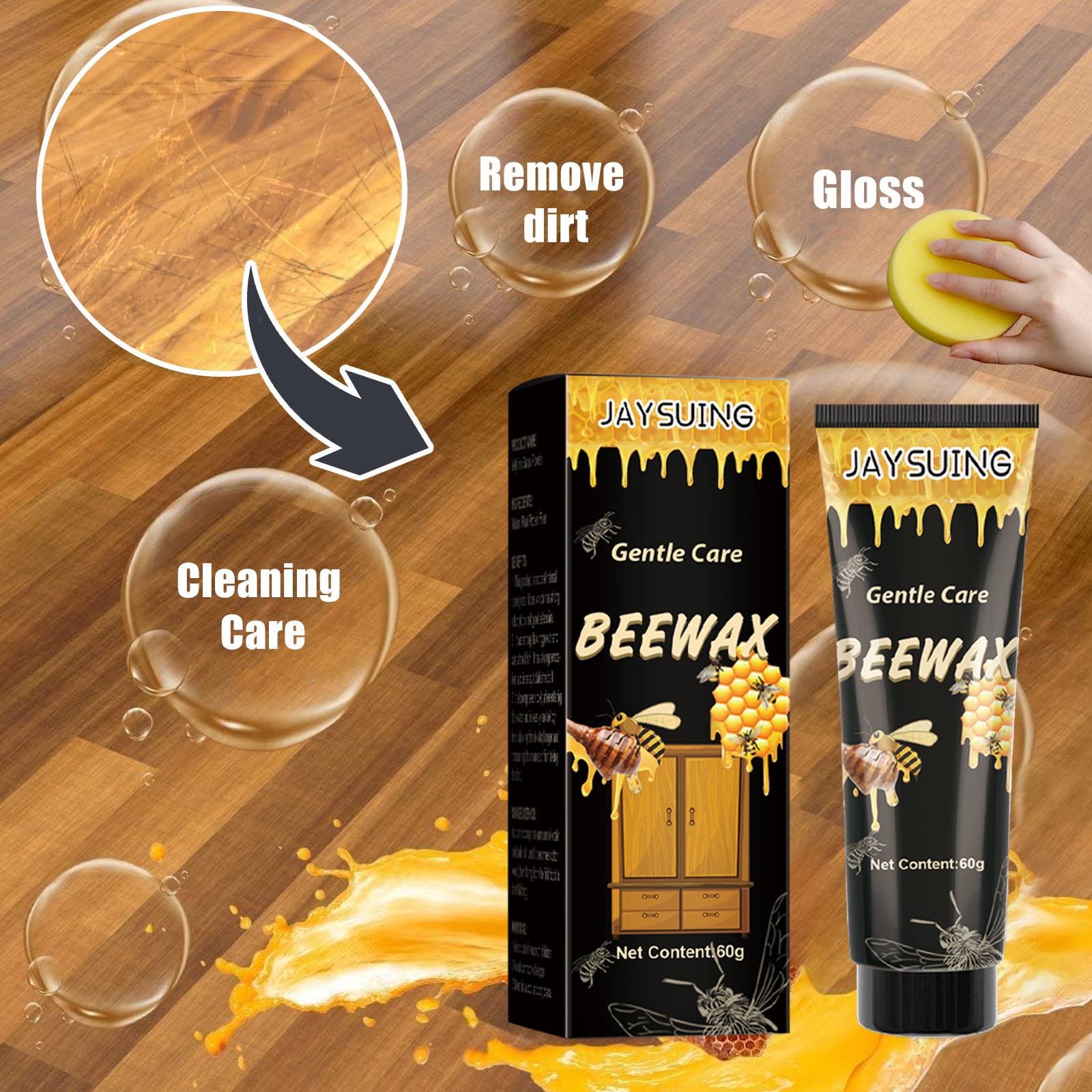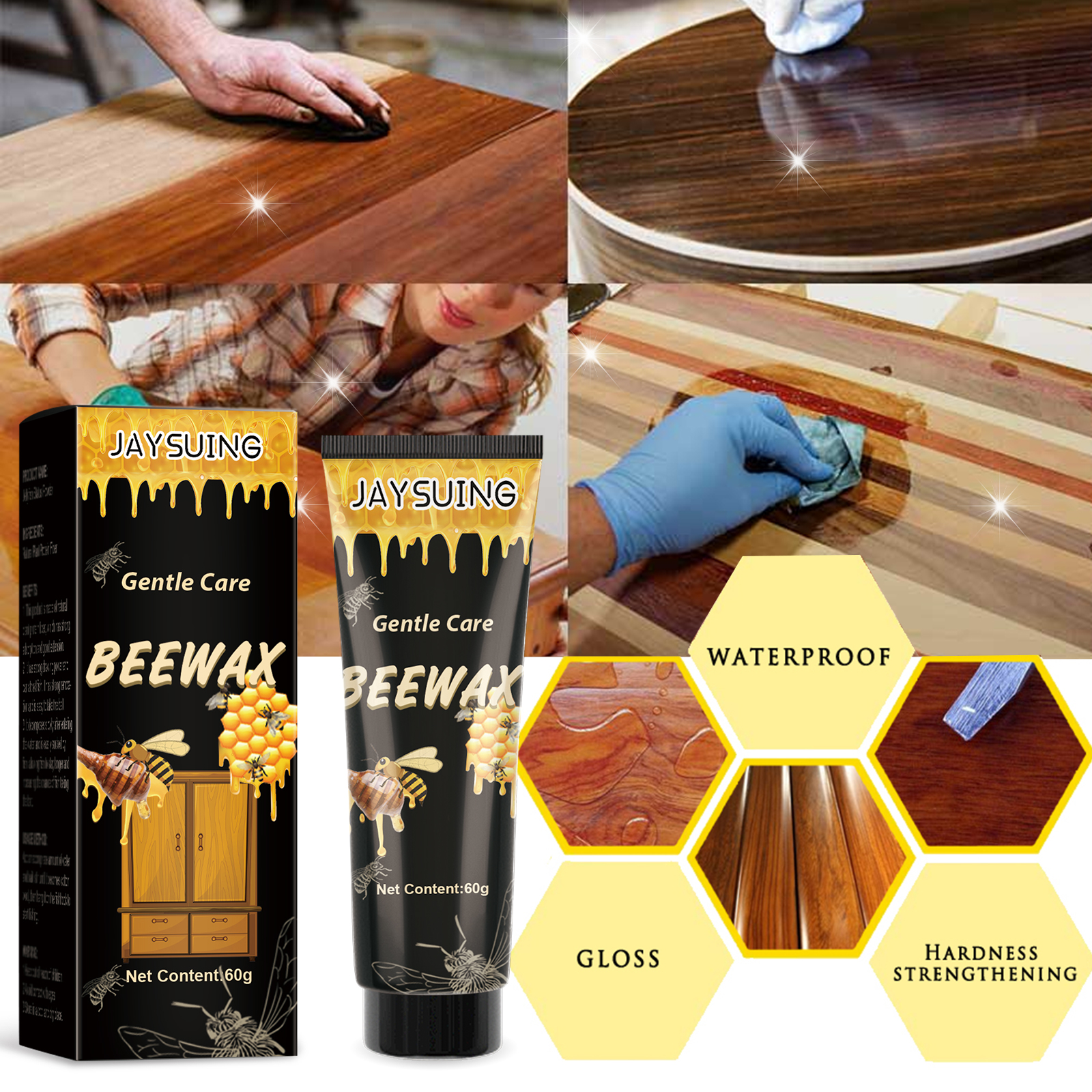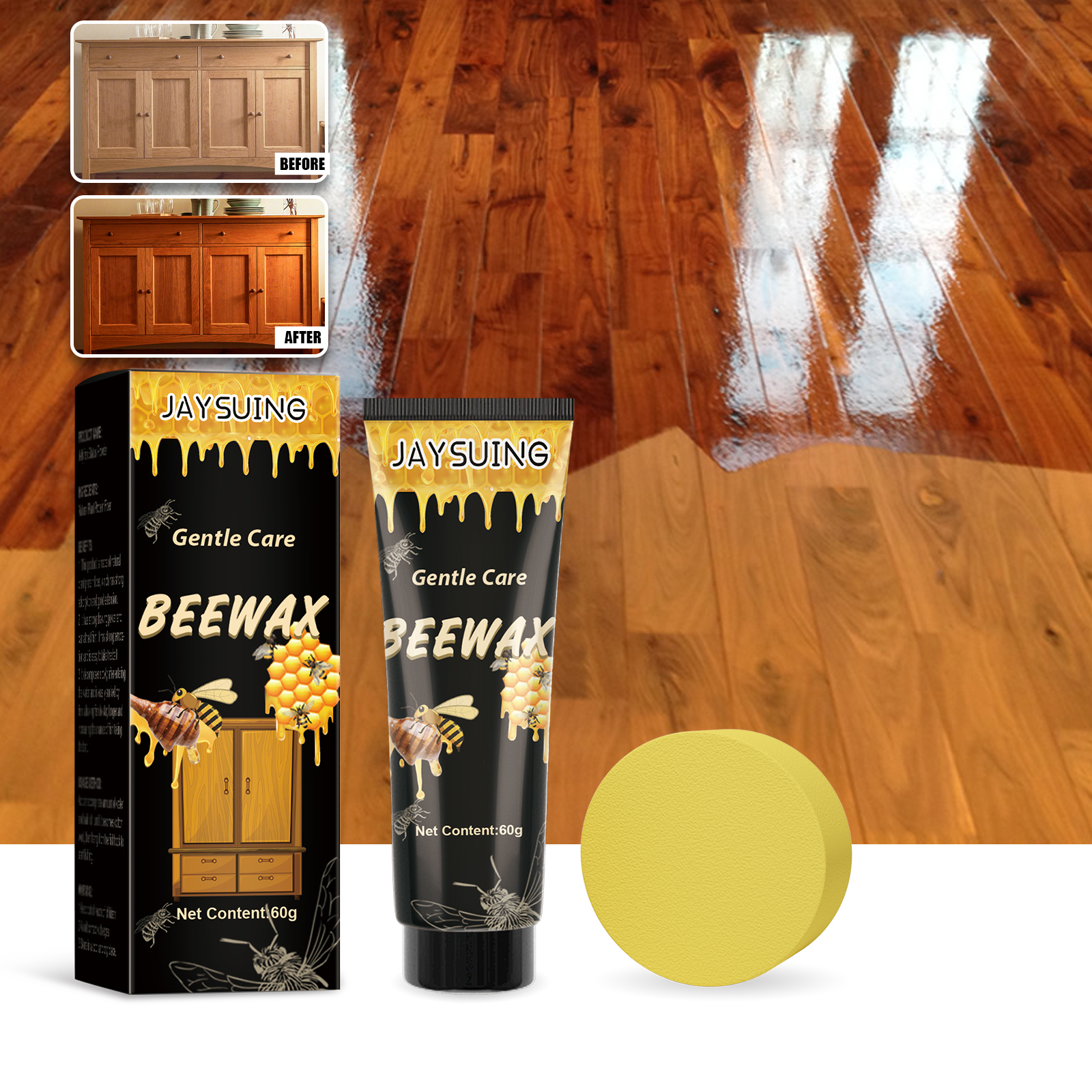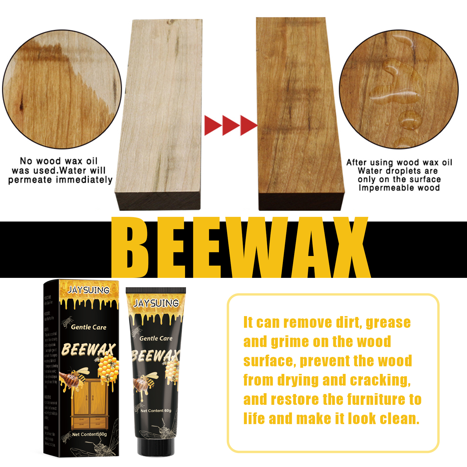 Jaysuing Wood Polishing Beeswax, Wood Floors Mahogany Furniture Cleaning Decontamination Brightening Care Beeswax