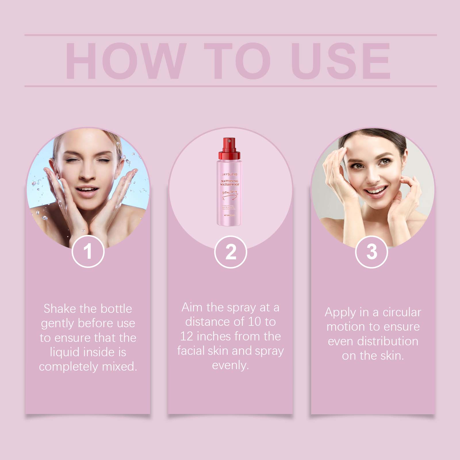 我们的哑光定妆喷雾含有透明质酸、维生素E(生育酚)。它独特的配方,使妆容保持整天哑光,清爽不油腻。轻松改善毛孔的外观令肌肤更加光滑细腻。它的使用方法很简单:使用前轻轻摇晃瓶子,确保里面的液体完全混合,将喷雾瞄准面部皮肤10到12英寸的距离,均匀喷洒。以打圈的方式涂抹,以确保均匀地分布在皮肤上。并且即使在高湿度环境下,化妆品仍然完好无损。