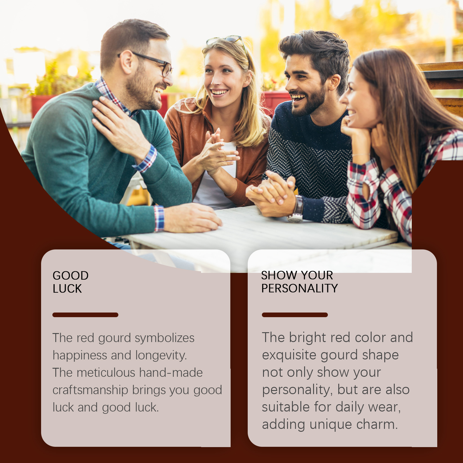 我们的手工红色葫芦手串含有玻璃。它可以象征着幸福和长寿。精心制作的手工工艺,为您带来好运和好运。它的使用方法很简单:把手镯戴在手腕上就行了。并且鲜艳的红色色彩和精致的葫芦造型,不仅展现了你的个性,还适合日常穿着,增添了独特的魅力。