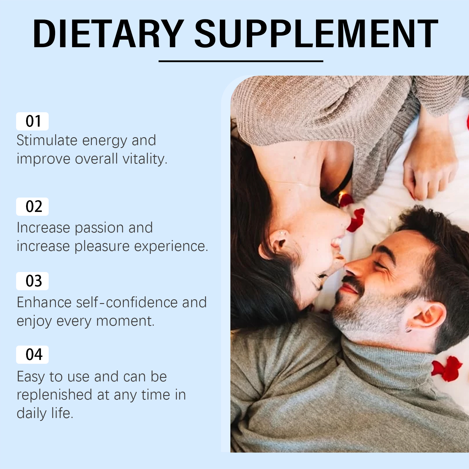 我们的膳食补充剂含有维生素b1、山梨酸钾、薄荷叶提取液。它可以带来舒适和享受更多有趣的时光。它的使用方法很简单:食用前请摇匀,每次1-2滴,每日1-2次。并且采用温和的配方有助于提升情绪,改善情绪。