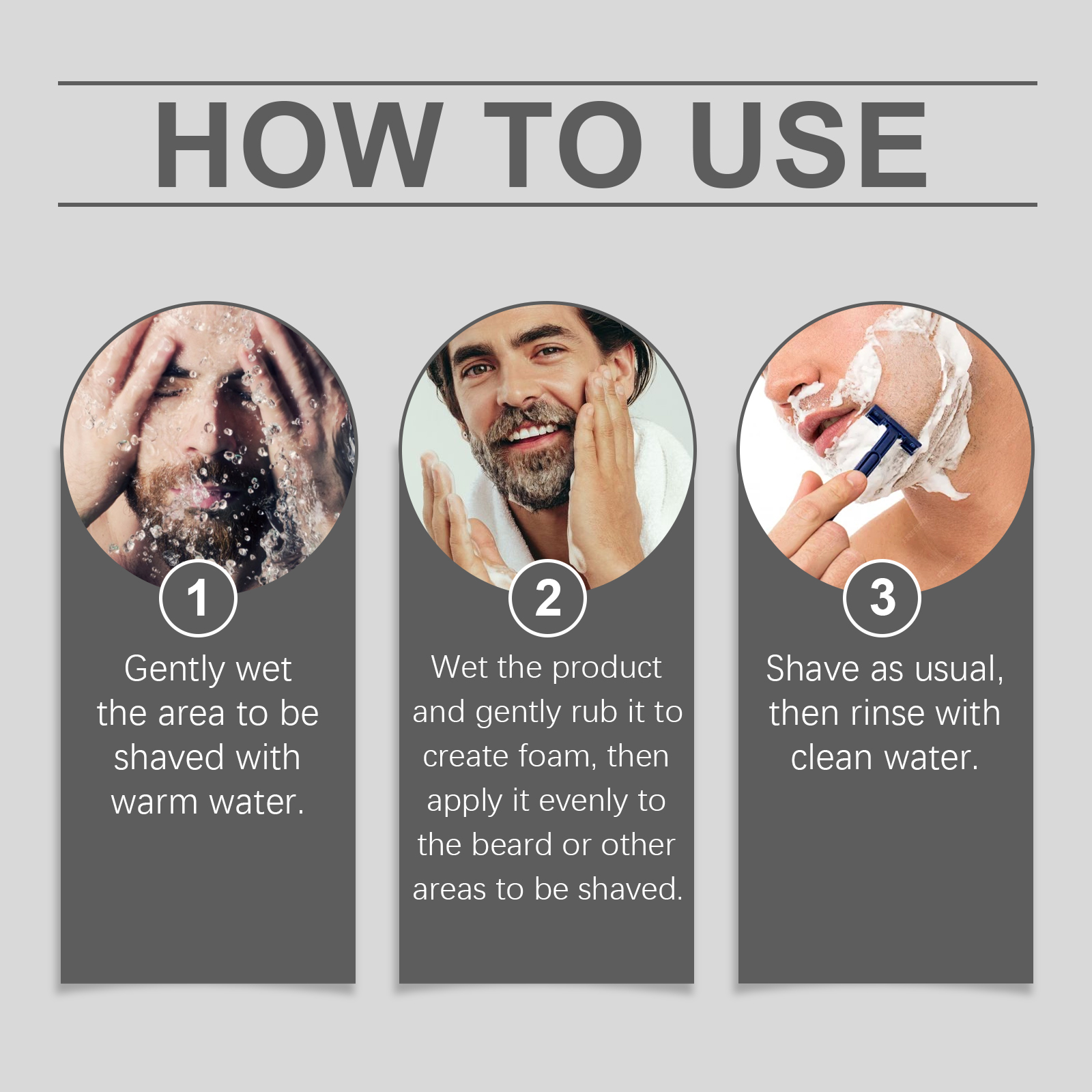 我们的男士剃须皂含有棕榈油酸钠、椰油酸钠。它可以专为敏感性肌肤设计不刺激肌肤。不会堵塞剃须刀,剃须顺畅。它的使用方法很简单:用温水轻轻湿润待剃的部位。将产品湿润后轻轻揉搓形成泡沫,然后均匀地涂抹在胡须或其他需要剃须的部位。照常剃须,然后用清水冲洗干净。并且可以使剃须更紧密、更干净。它可以有效减少剃须后的红肿和不适。