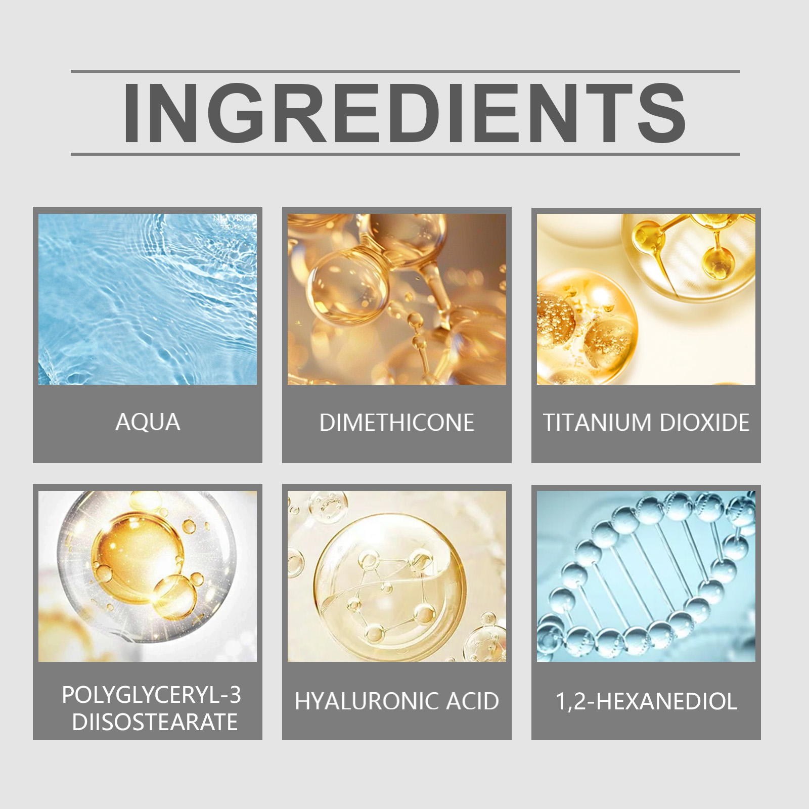 我们的温变持妆粉底液含有聚二甲基硅氧烷、二氧化钛。它可以轻松覆盖不均匀的肤色,创造出光滑无瑕的妆容效果。它的使用方法很简单:清洁脸部并保持干燥。双手取适量液体粉底,用指尖或化妆棉涂在脸上,轻轻拍打至均匀覆盖面部。并且可以全天化妆表演,无需频繁化妆。