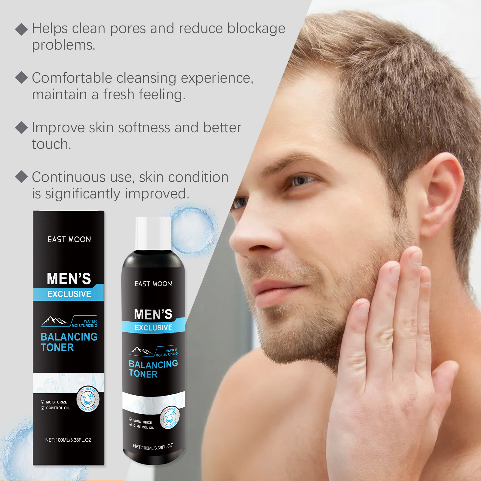 East Moon Men's Oil Control Toner, Men's Face Hydrating Moisture Lock Moisturizing Skin Toner