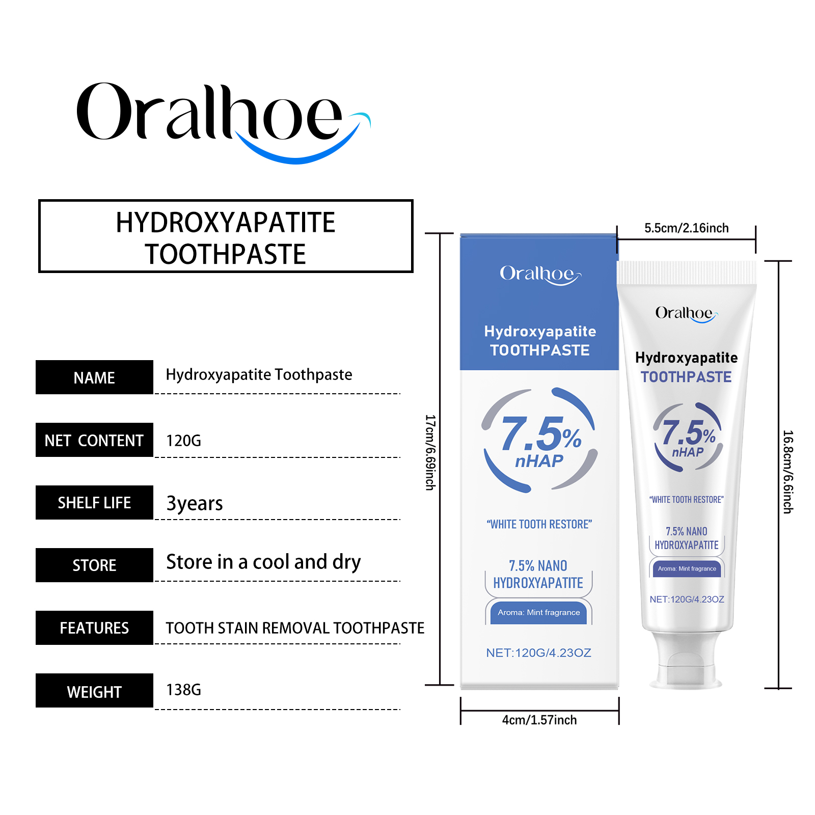 Oralhoe Mint Toothpaste, Decontamination Repair Teeth Clean Mint Fresh Deodorant Beauty Care Toothpaste