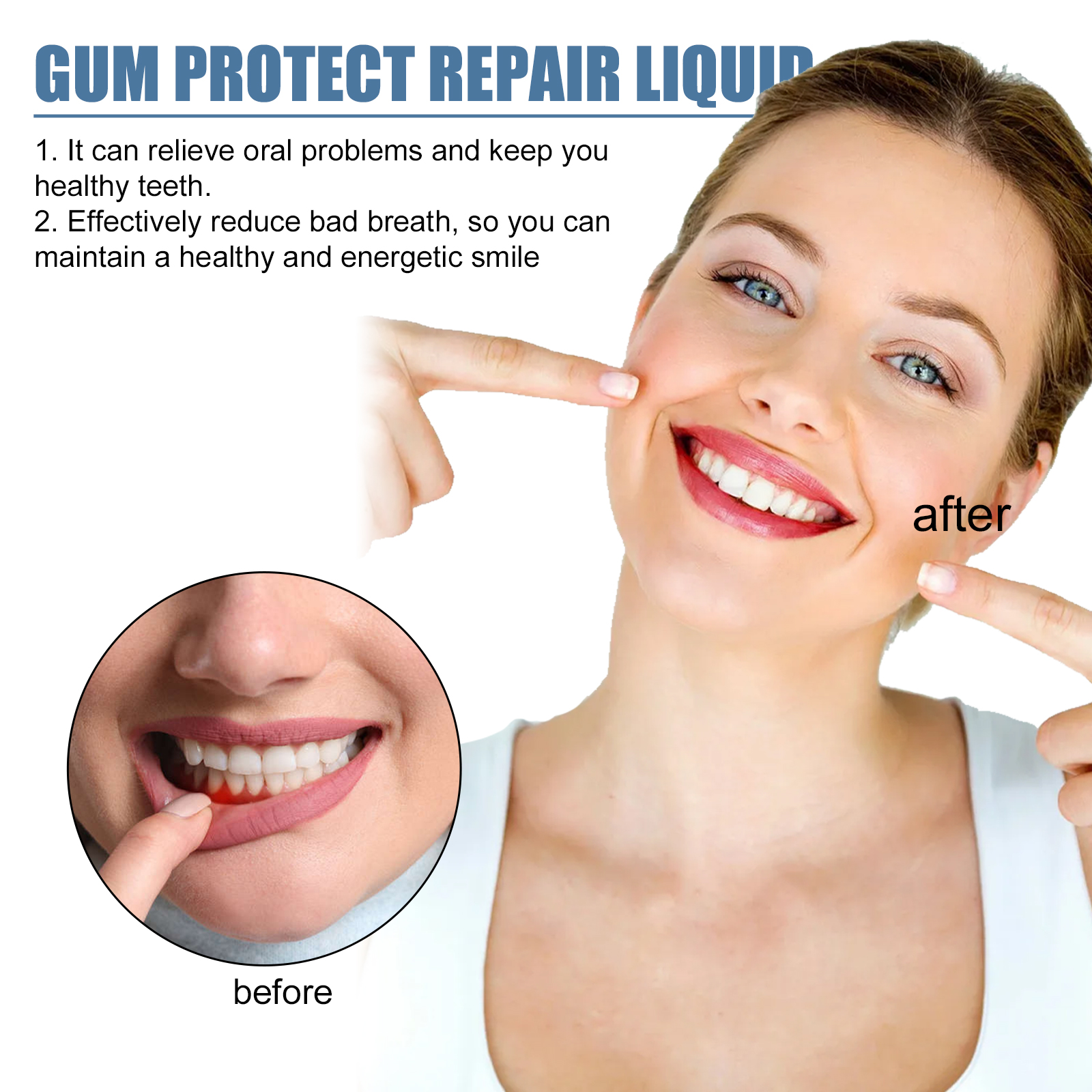 我们的牙龈修护液含有忍冬花提取物、田野薄荷提取物。它可以缓解上火、牙龈肿痛,有效减少口臭,预防牙龈萎缩,支持您的整体口腔健康。它的使用方法很简单:清洁口腔,擦干牙齿表面,在每颗牙齿上涂上一层薄薄的修复液,重复1-3次,等待10秒,直到涂层干燥即可。可以有效缓解口腔问题,让你的牙齿更加健康,还您灿烂笑容。