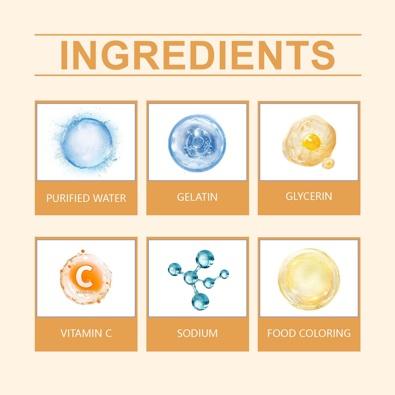 | 成分 | 明胶、钠、食用着色剂 |