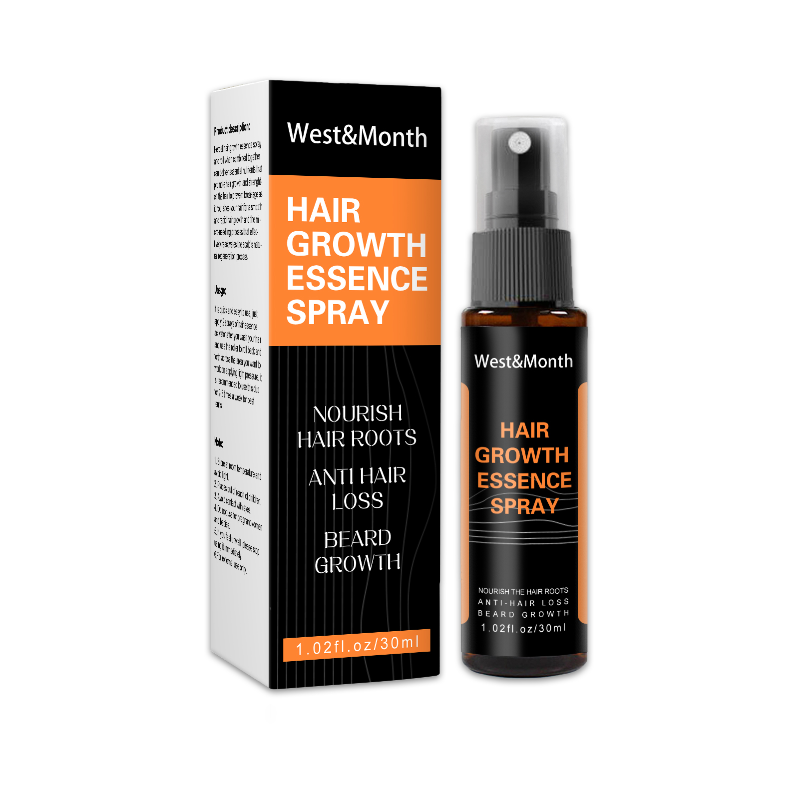 我们的毛发生长精华喷雾含有何首乌、生姜。人参。它可以修复受损毛囊,促进头发生长,有效减少白发密度滋润头发,减少脱发,强韧发根。它的使用方法很简单:净头发,将喷雾均匀喷在头发上,轻轻按摩至完全吸收即可。使用后可以控制油脂分泌,防止油脂分泌过多而堵塞毛囊。帮助头发生长滋养发根。