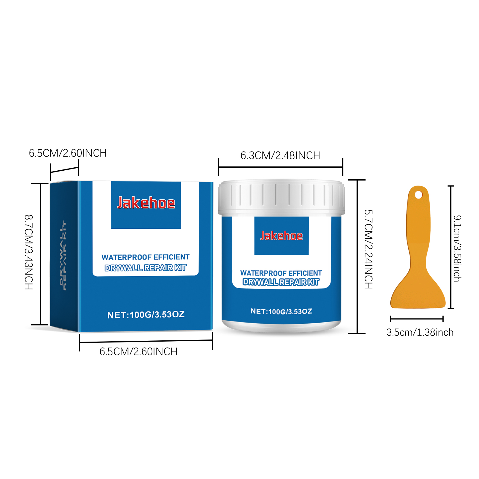 | 产品尺寸 | 墙面修补膏:6.3*5.7cm,刮板:3.5*9.1cm |