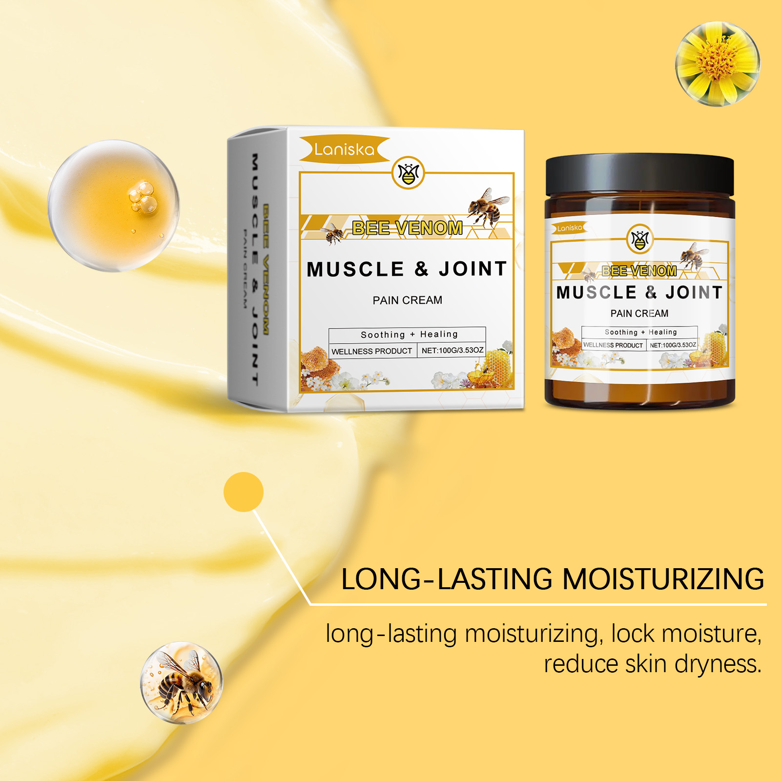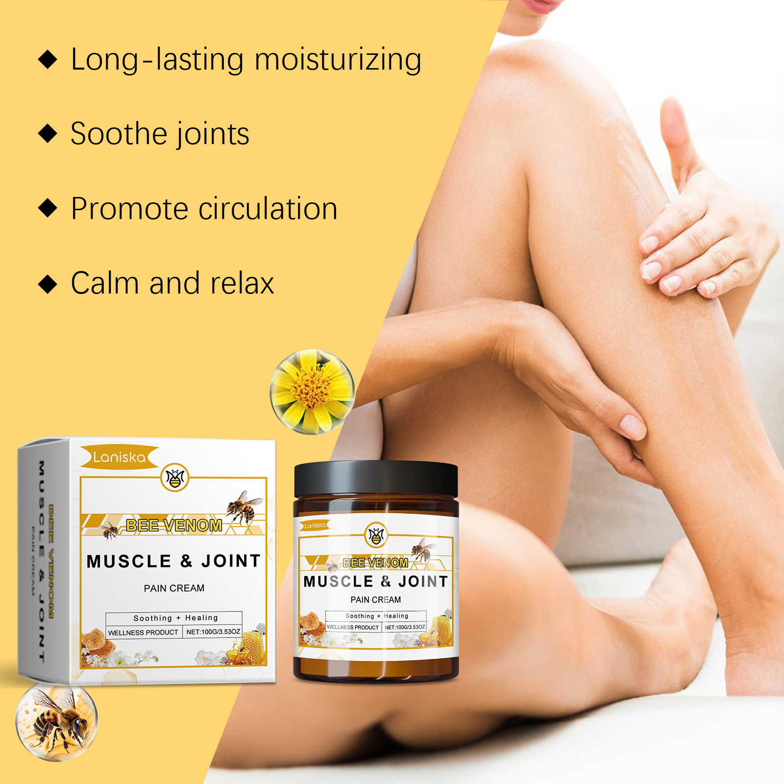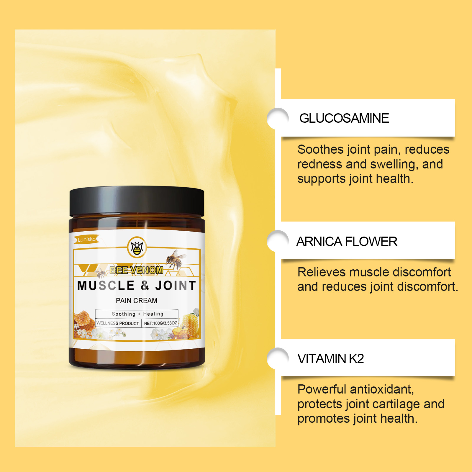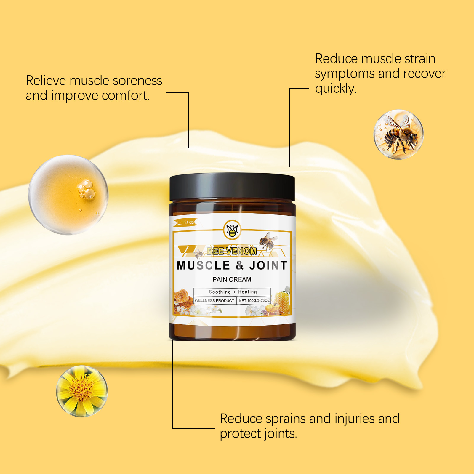 Laniska Bee Venom Joint Soothing Cream, To Relieve Joint Discomfort Gentle Maintenance Daily Massage Cream
