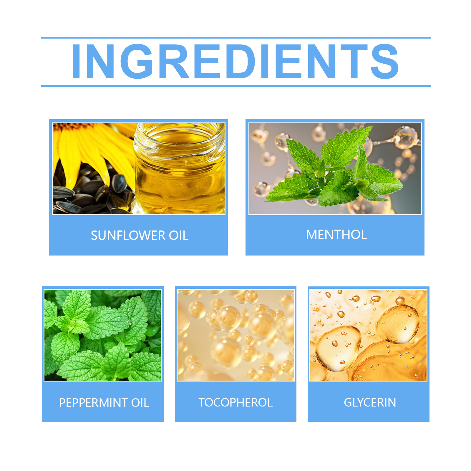 我们的多功能鼻部吸入器含有葵花籽油、薄荷醇。它可以减轻腿部的沉重感,恢复轻盈。促进血液循环,提高舒适度。它的使用方法很简单:打开盖子,将产品置于鼻孔下,缓慢吸气5秒,每天至少使用一次,建议每天多次使用。并且可以有效缓解肌肉痉挛,放松身体.快速缓解不适。