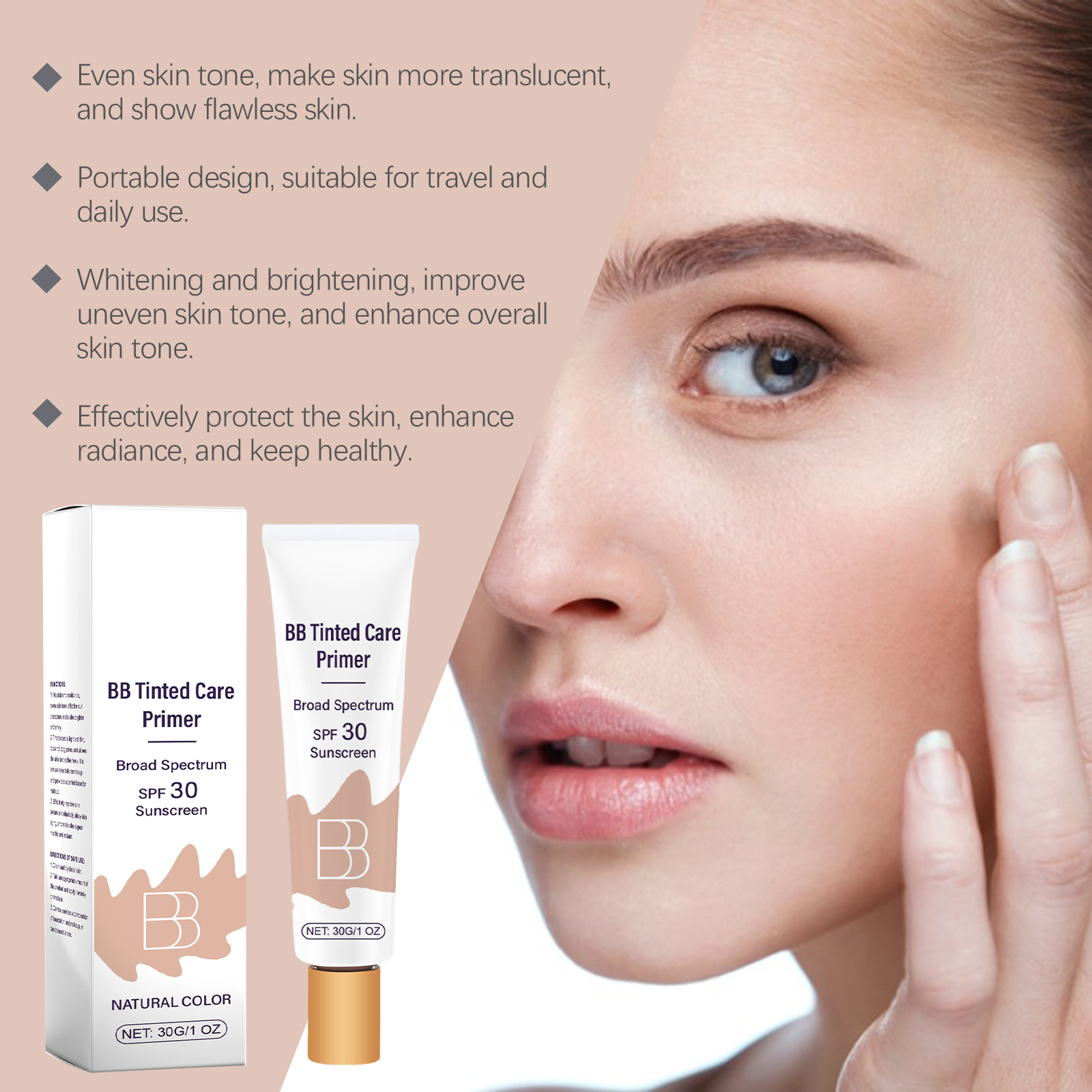 AMZ Protective Bb Cream (Natural Color) Hides Facial Makeup Blemishes And Moisturizes Daily Protective Toner Cream