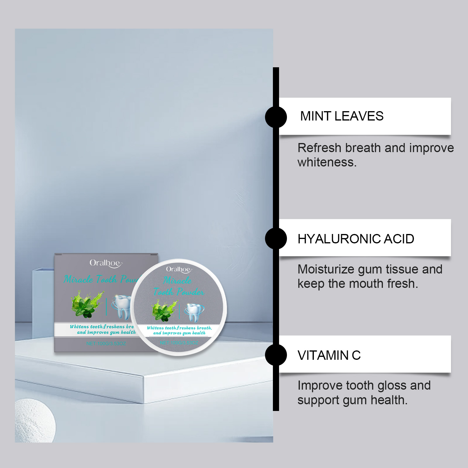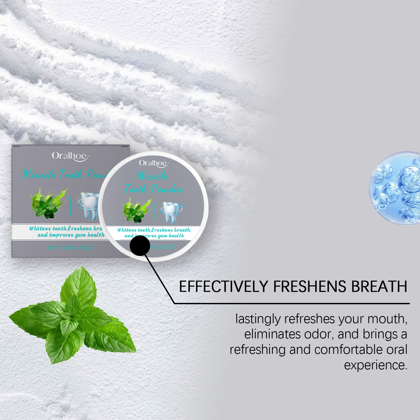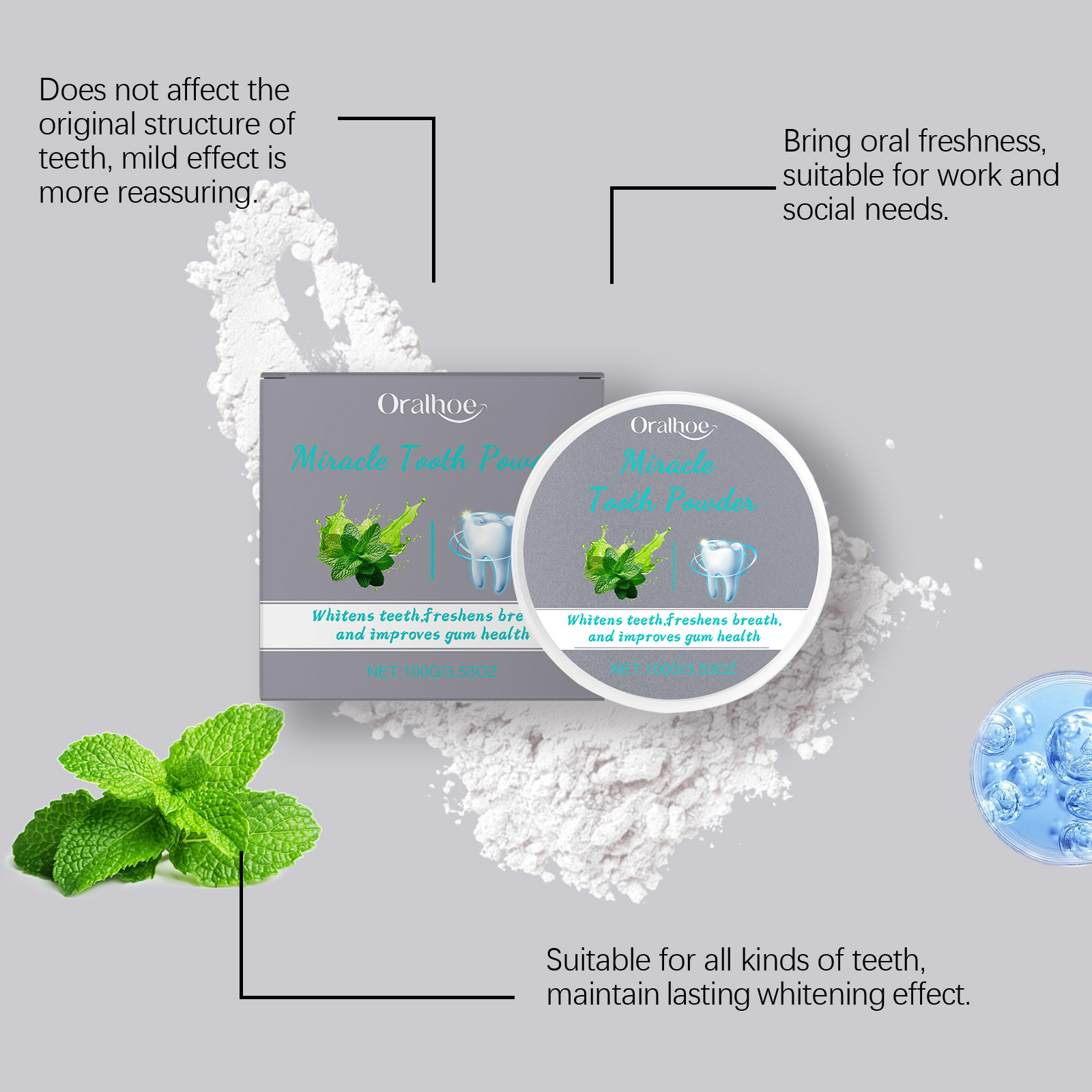 Oralhoe Mint Teeth Powder, Gentle Teeth Cleaning Powder Fresh Breath Clean Daily Care Powder
