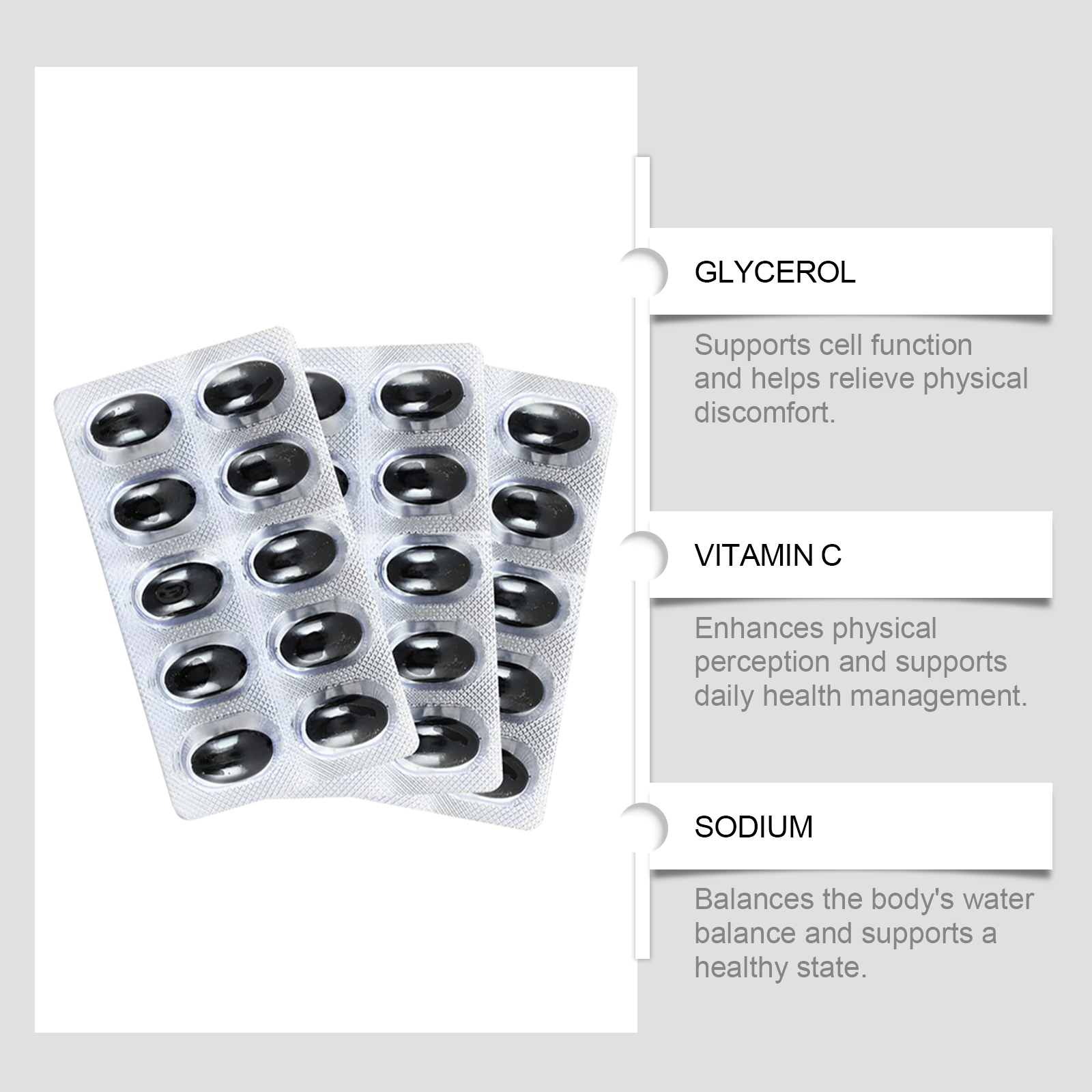 我们的炎症肿胀缓解胶囊含有钠、食用着色剂。它可以有效减少身体不适,改善活动能力。它的使用方法很简单:每天两次,每次1~2粒。并且长期使用有助于提高身体的柔韧性和舒适性。