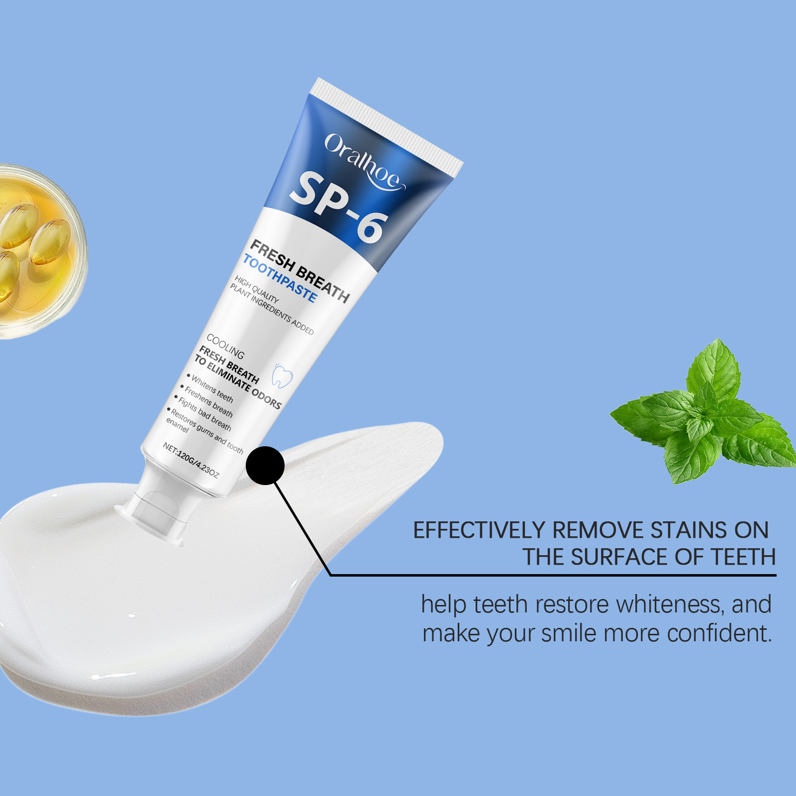 Oralhoe Mint Toothpaste, Gently Cleans Teeth Remove Stains Remove Odors Care For Mouth Hygiene Toothpaste