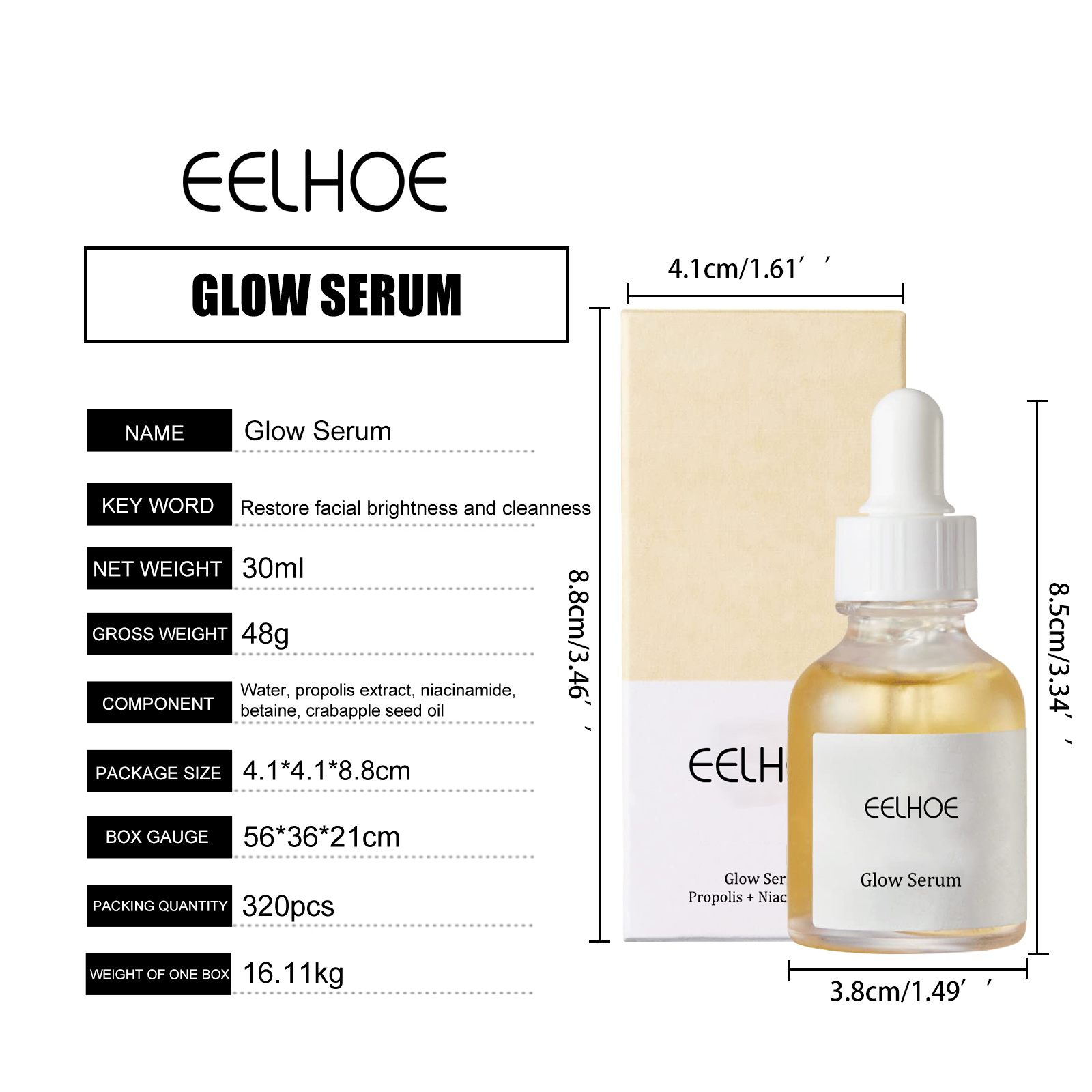 EELHOE Propolis Nicotinamide Photosensitive Essence, Reduces Acne Marks Moisturizes Brightens And Whitens Facial Essence