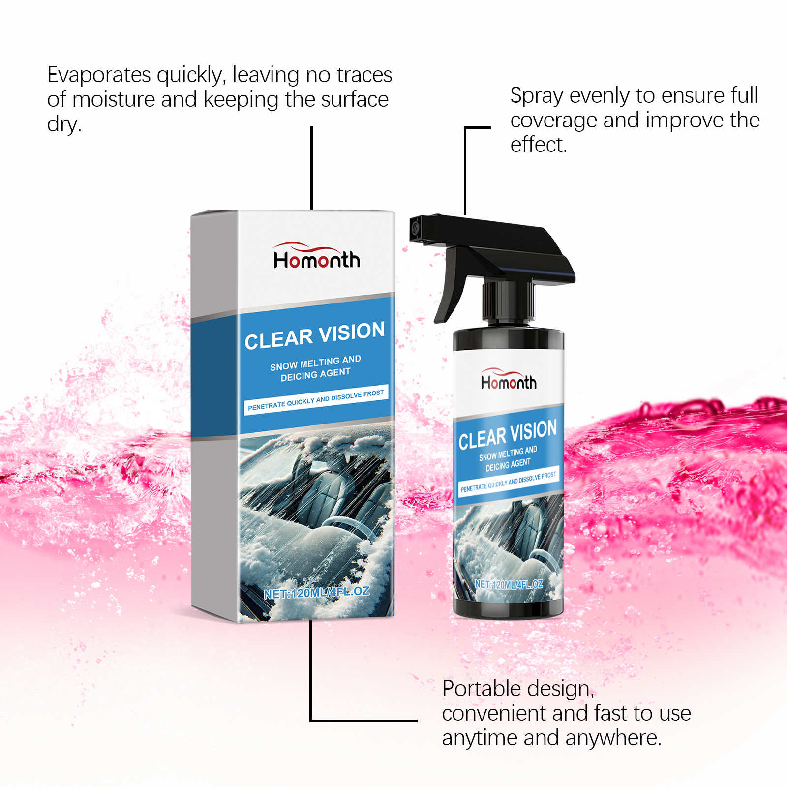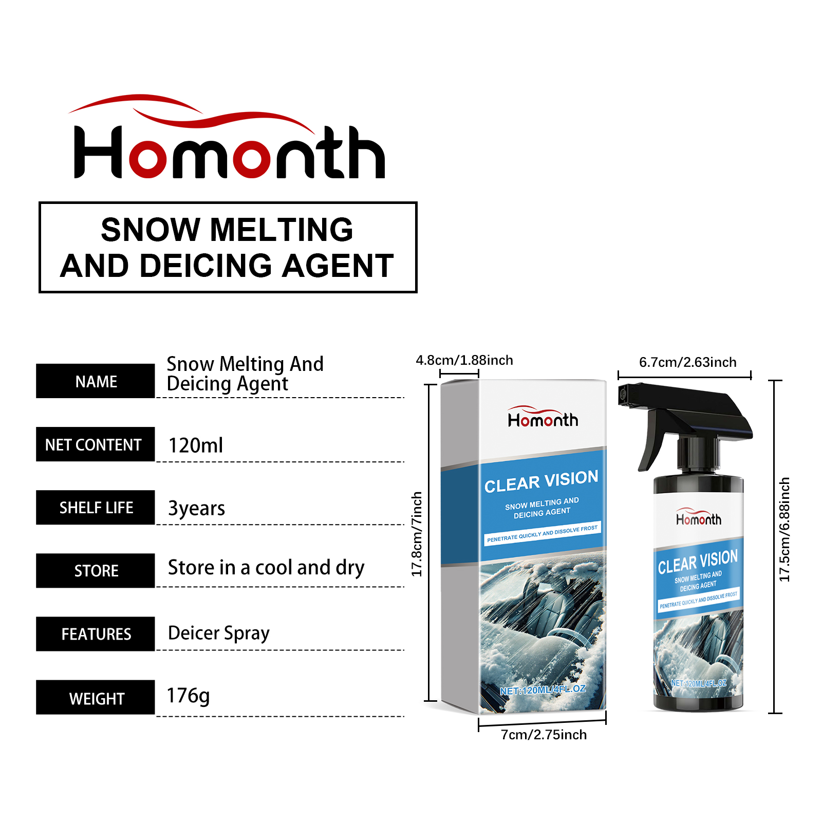 Homonth Car Snow Deicing Agent, Window Glass Snow Ice Cleaning Snow Deicing Convenient Spray