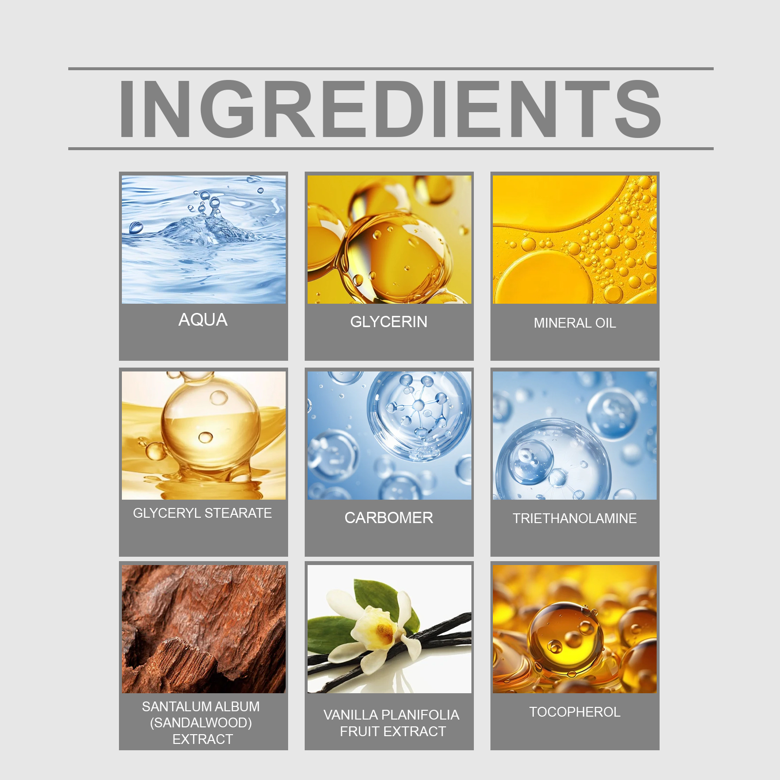 | 成分 | 檀香提取物、香草提取物、维生素E(生育酚) |