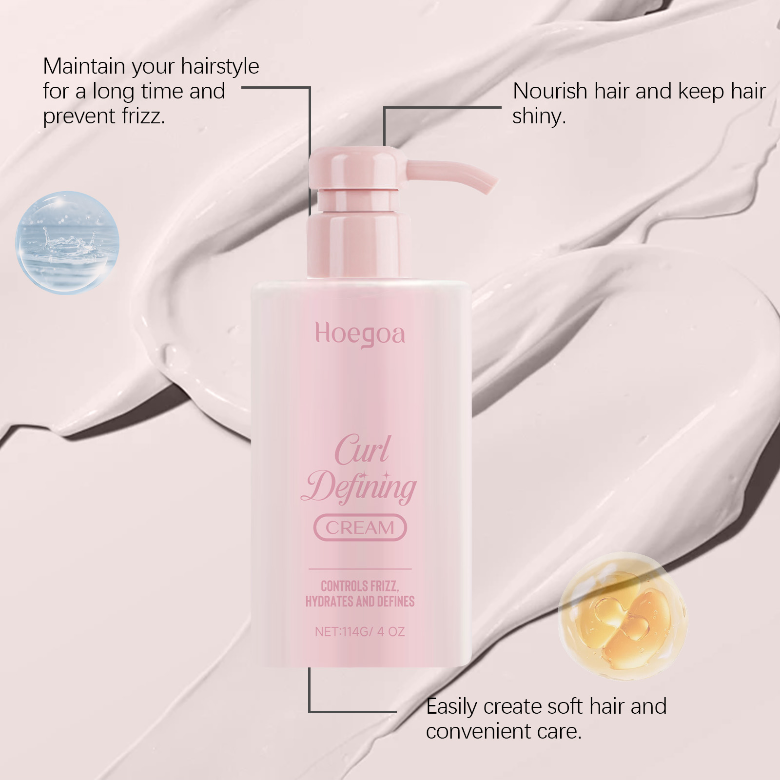 Hoegoa Hair Care Styling Cream, Bangs Hair Styling Cream For Natural Volumizing And Glossy Hair Styling