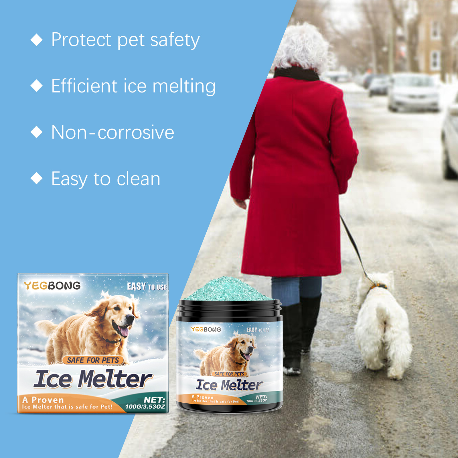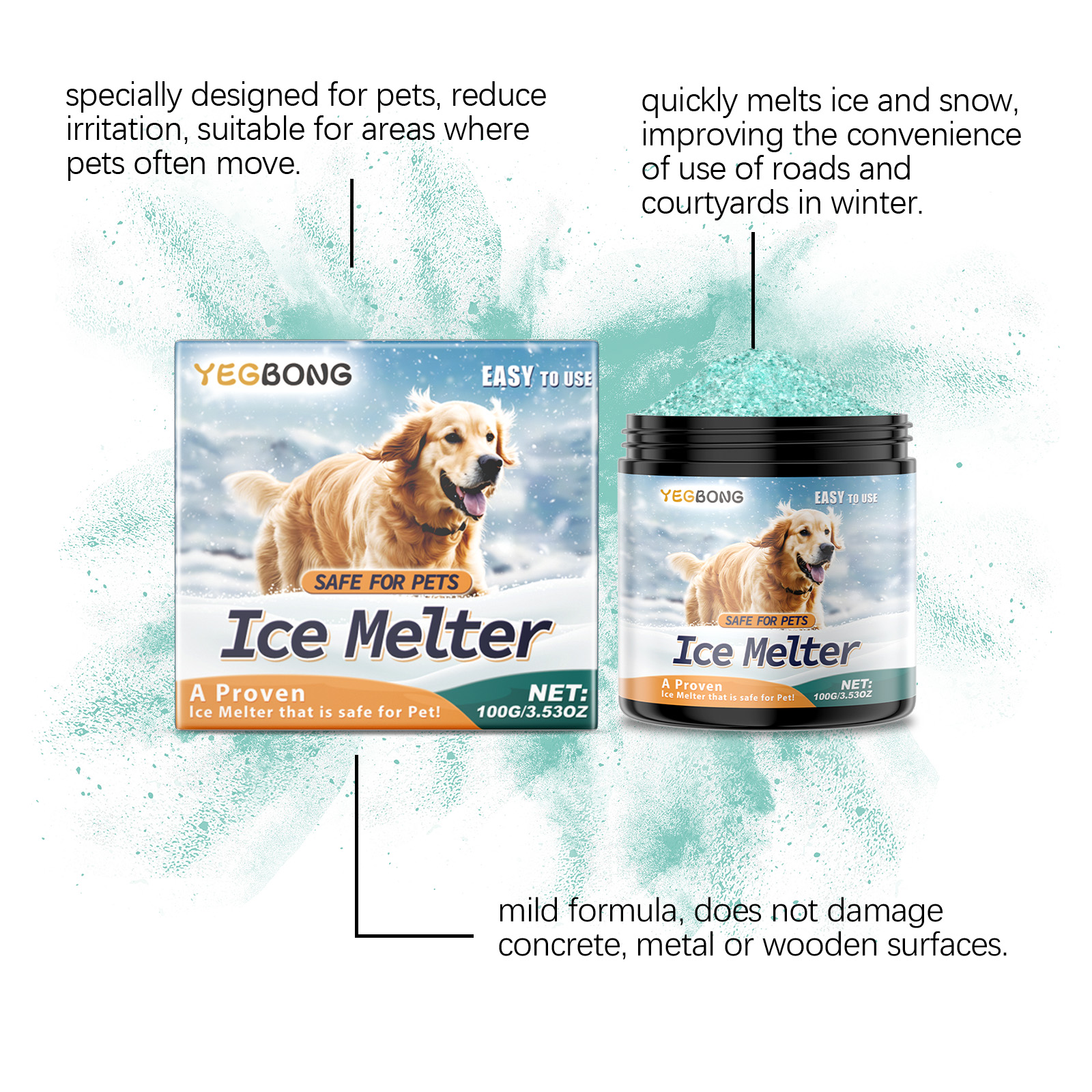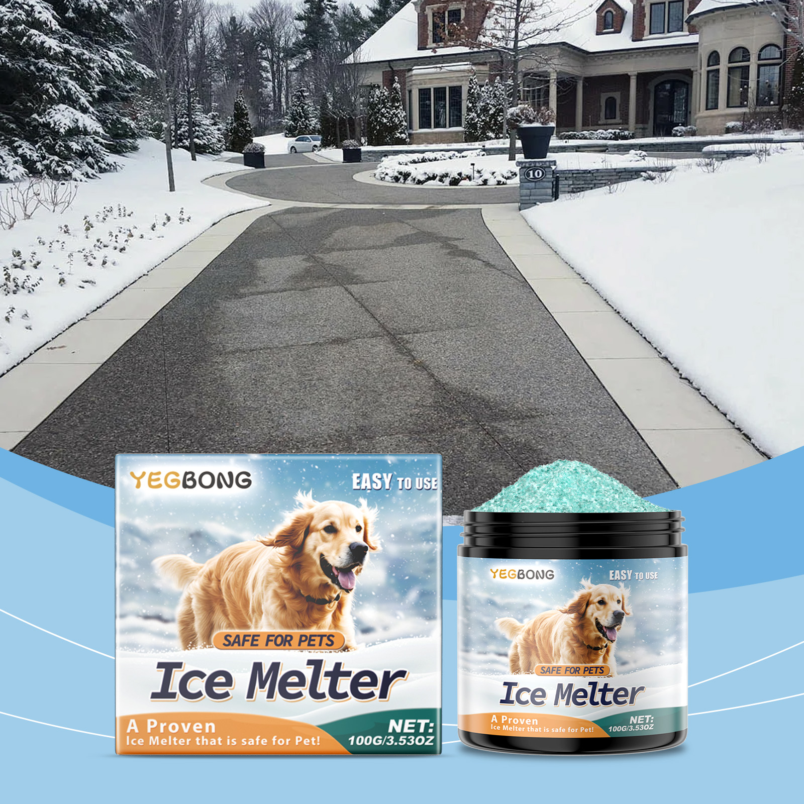 Yegbong Pet-Friendly Ice Melt, Concrete Street Floor Ice Melt Snow Pet-Friendly Snow Melt