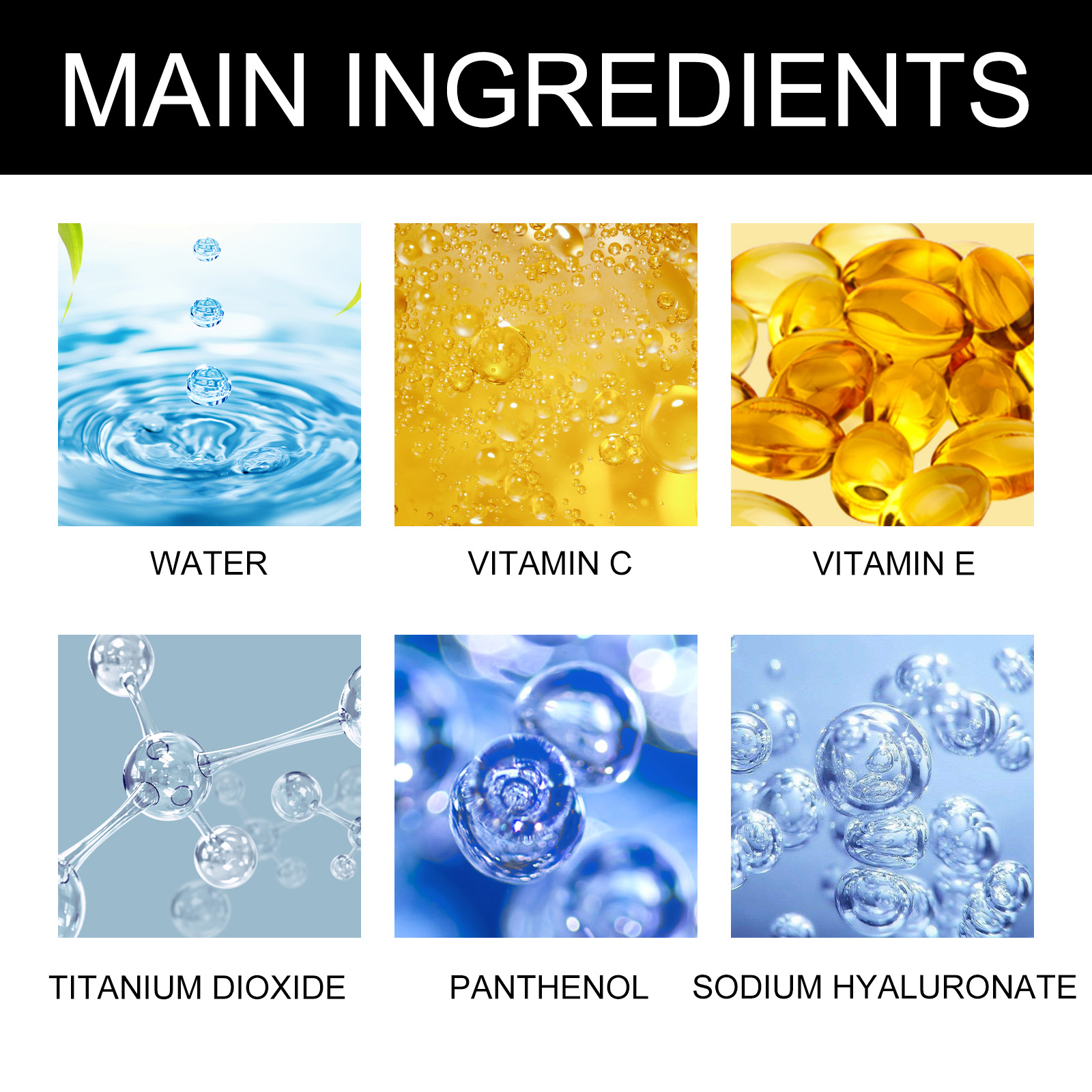 | 成分 | 维生素C、维生素E、二氧化钛、泛醇 |