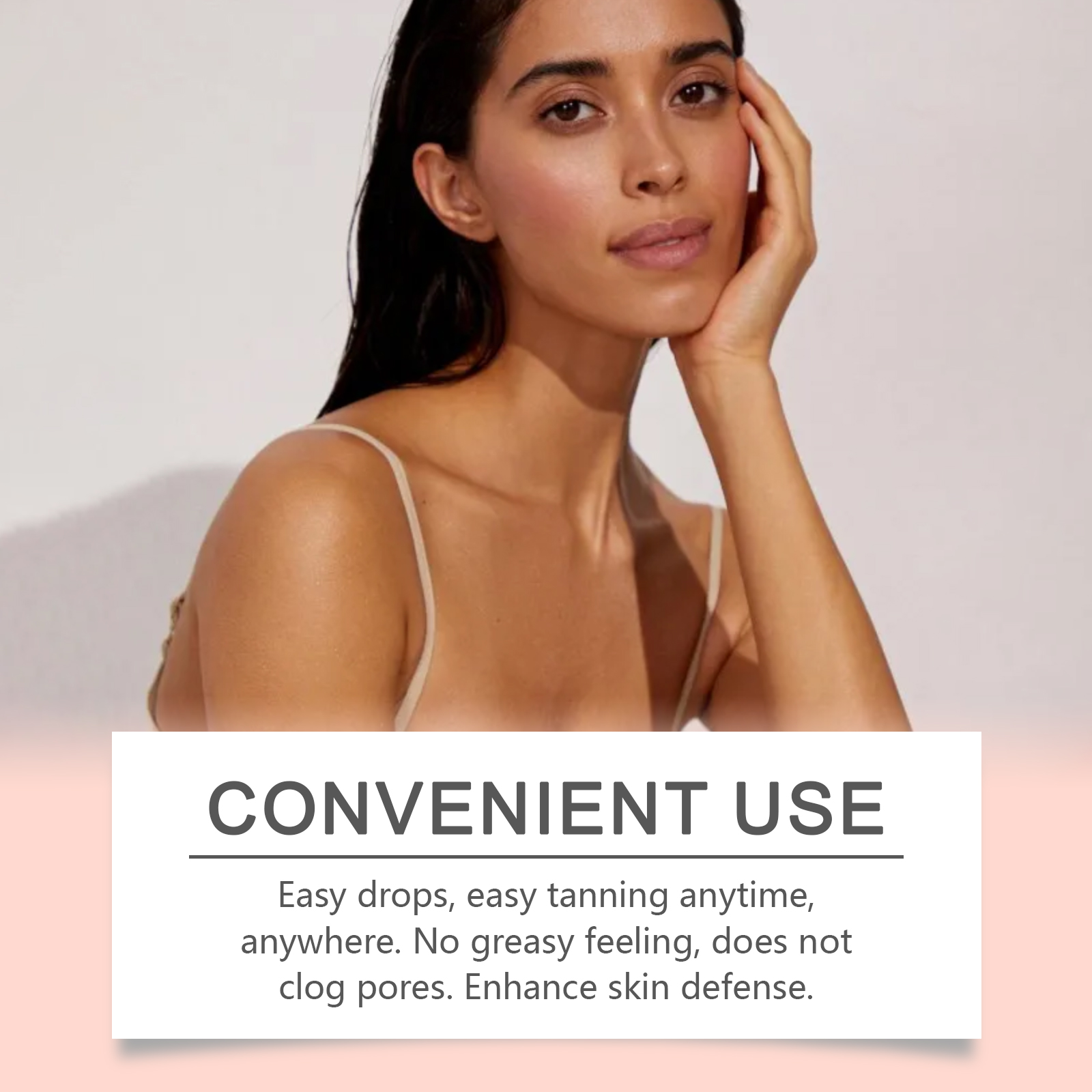 我们的草本免晒美黑补充滴剂含有葡萄糖酸内脂、山梨酸钾、维生素b1。它可以随时随地轻松晒黑,没有油腻感,不堵塞毛孔,增强肌肤防御能力。它的使用方法很简单:食用前请先摇匀,每次1-2滴,每日1-2次。并且可以帮助均匀肤色并保持肤色。