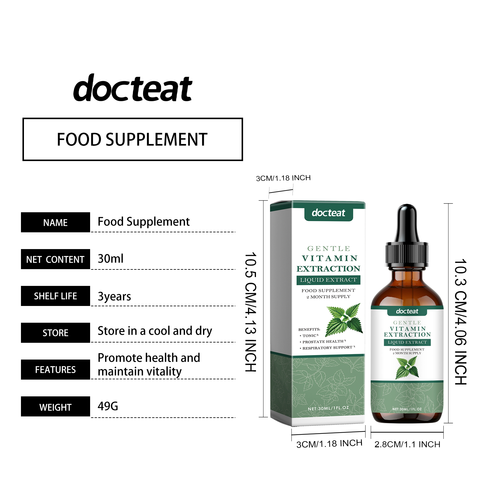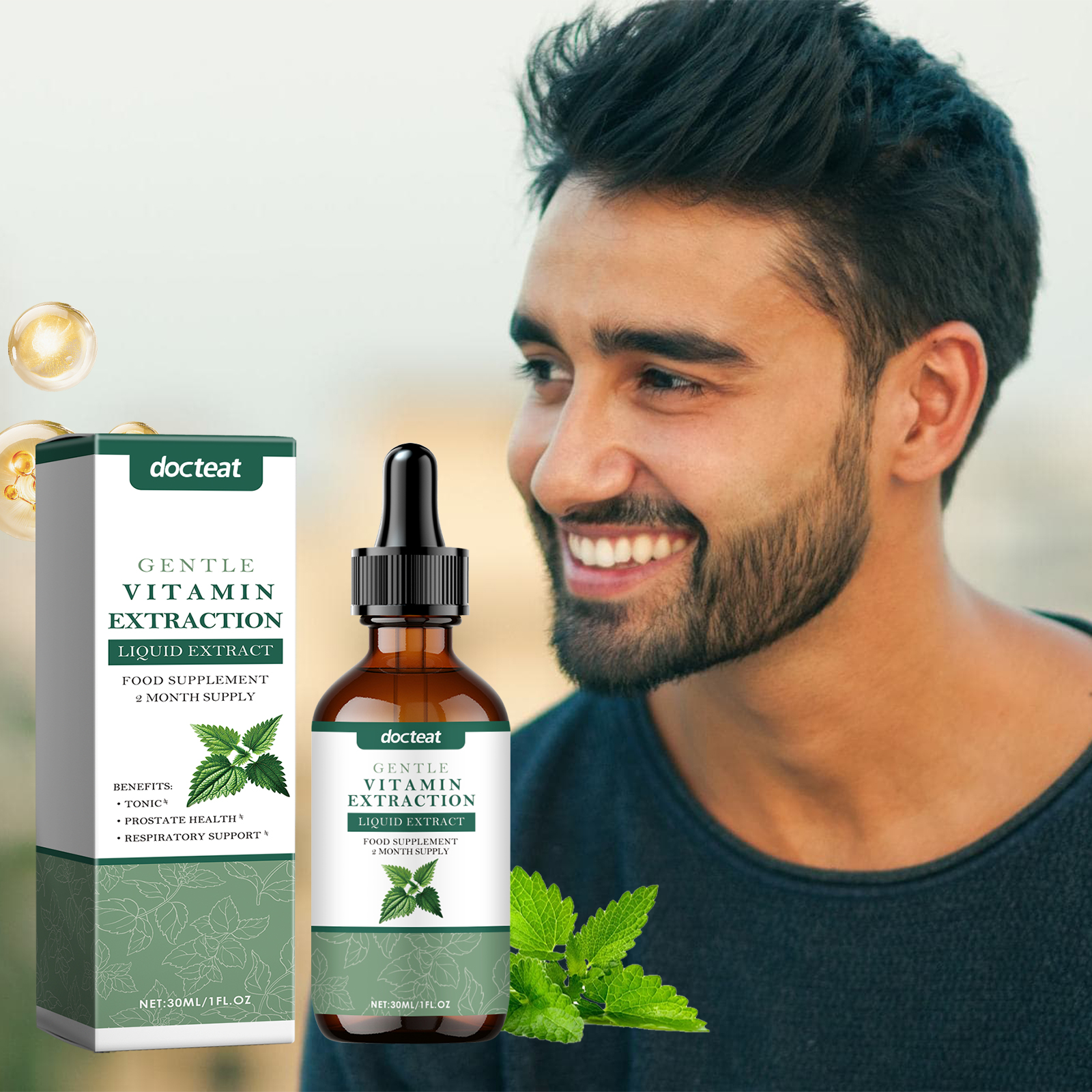 Docteat Stinging Nettle Leaf Supplement Drops, Herbal Essence Gentle Nourishing Body Daily Care Drops