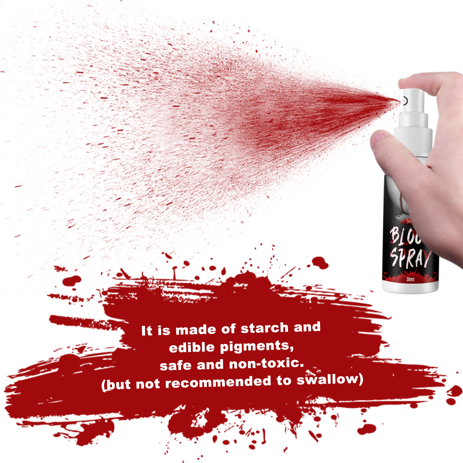 我们的血浆喷雾含有淀粉和食用色素。它可以用于拍电影流血效果,活动表演,鬼节,鬼屋,节日表演等。它的使用方法很简单:打开喷雾瓶盖,按压喷头使用。并且可以使喷血效果生动多彩,安全又无害。