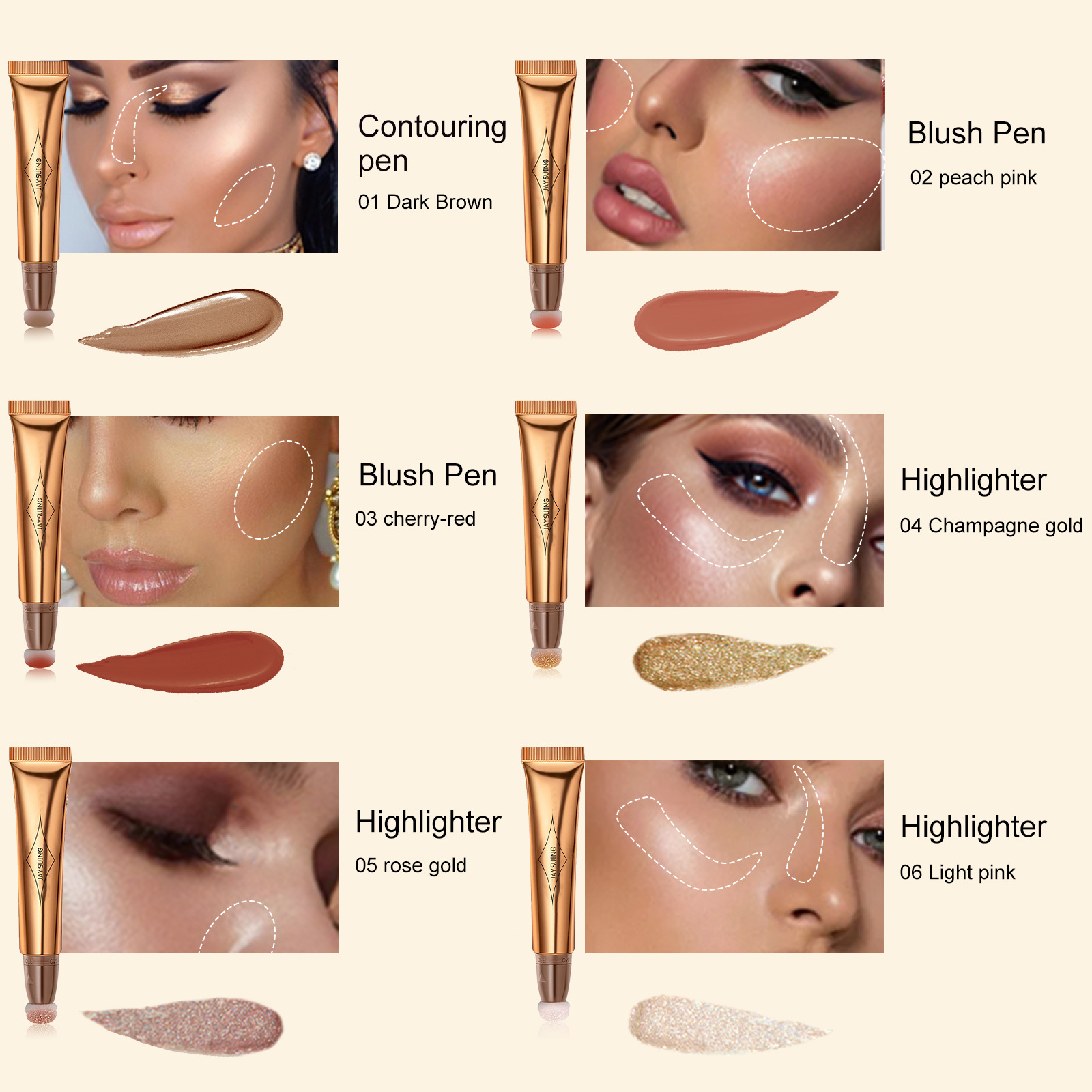 Jaysuing Multi-Functional Makeup Pen, Solid Liquid Contour Facial Blush Contour Highlighter Stick