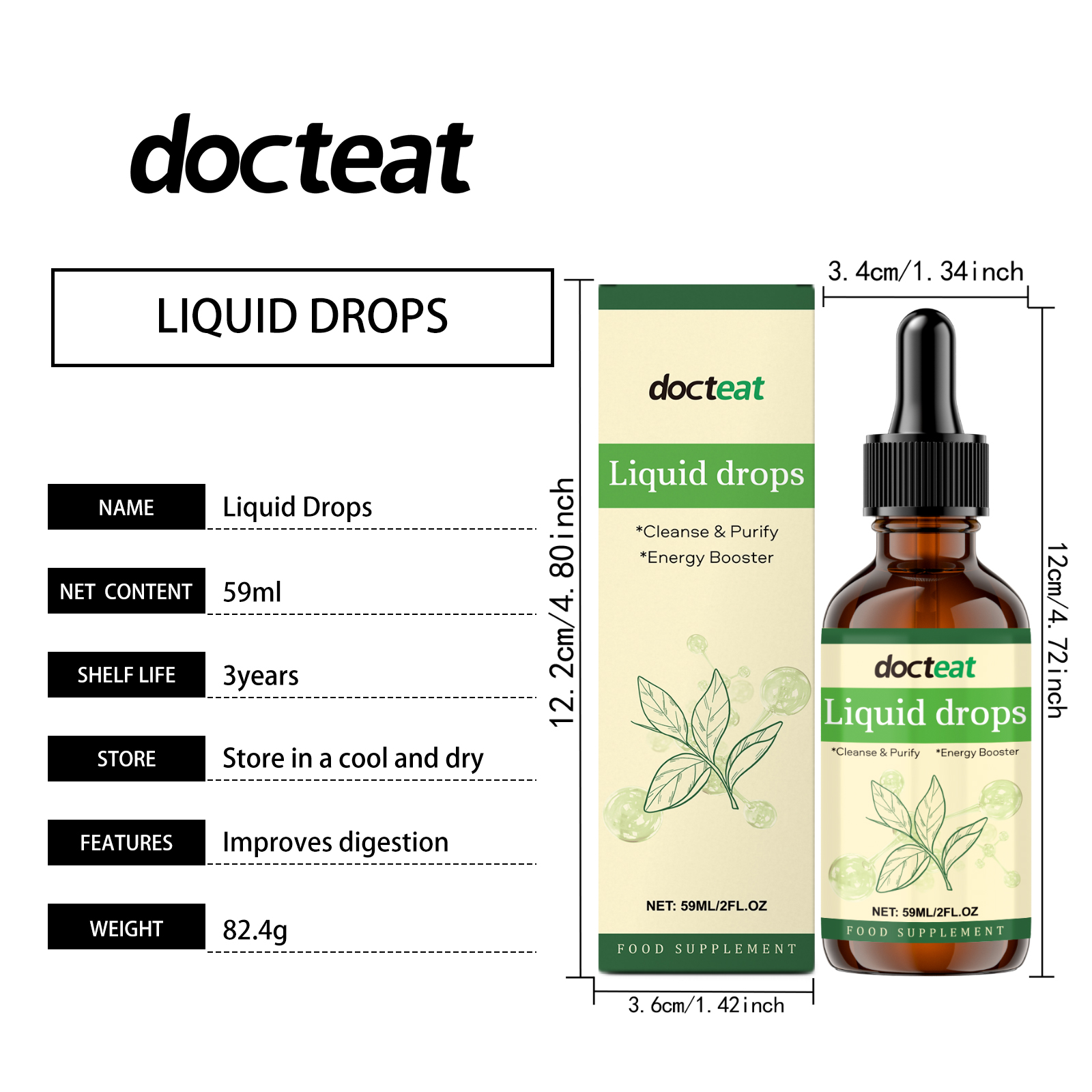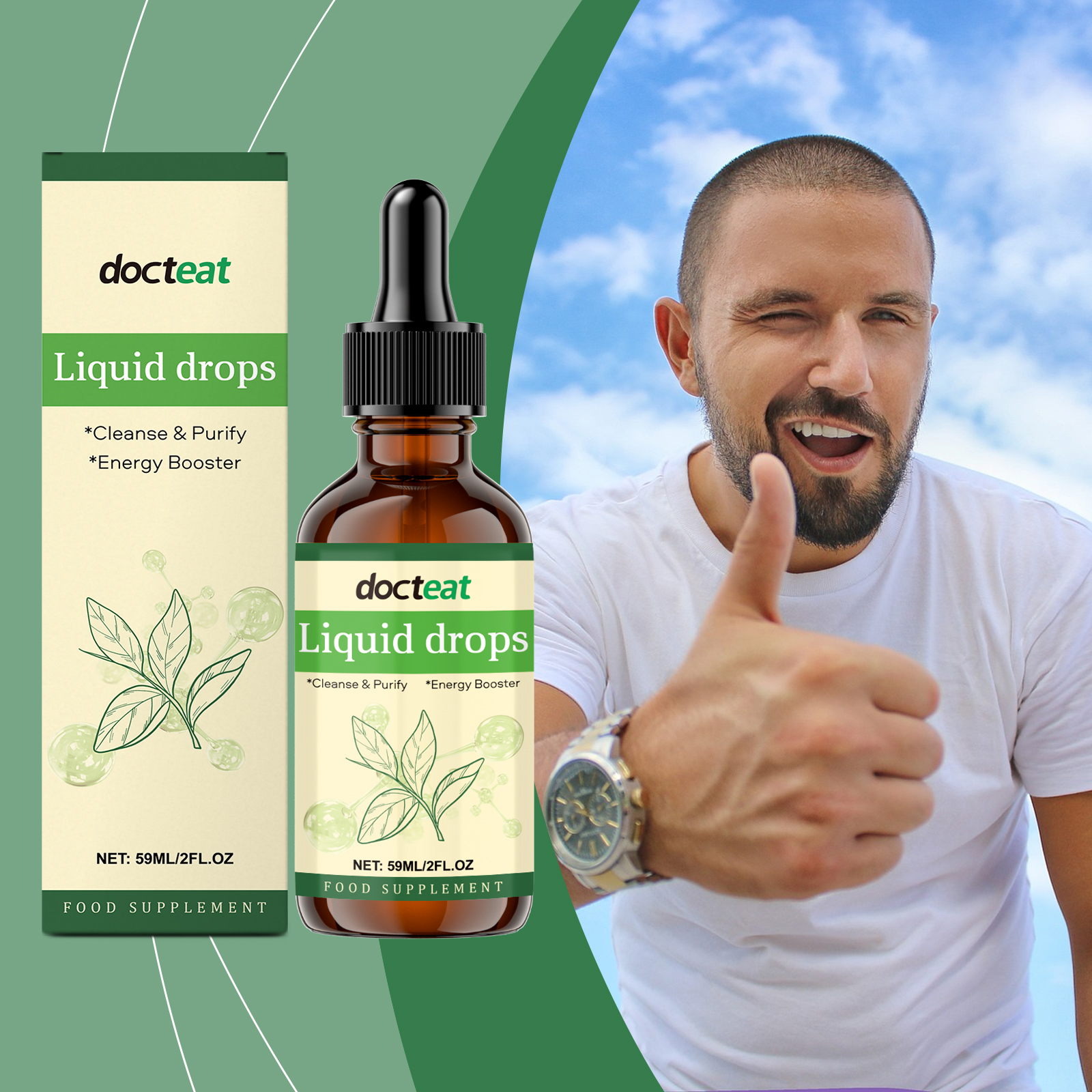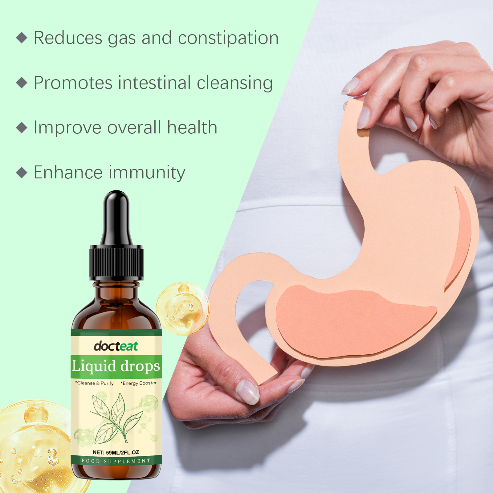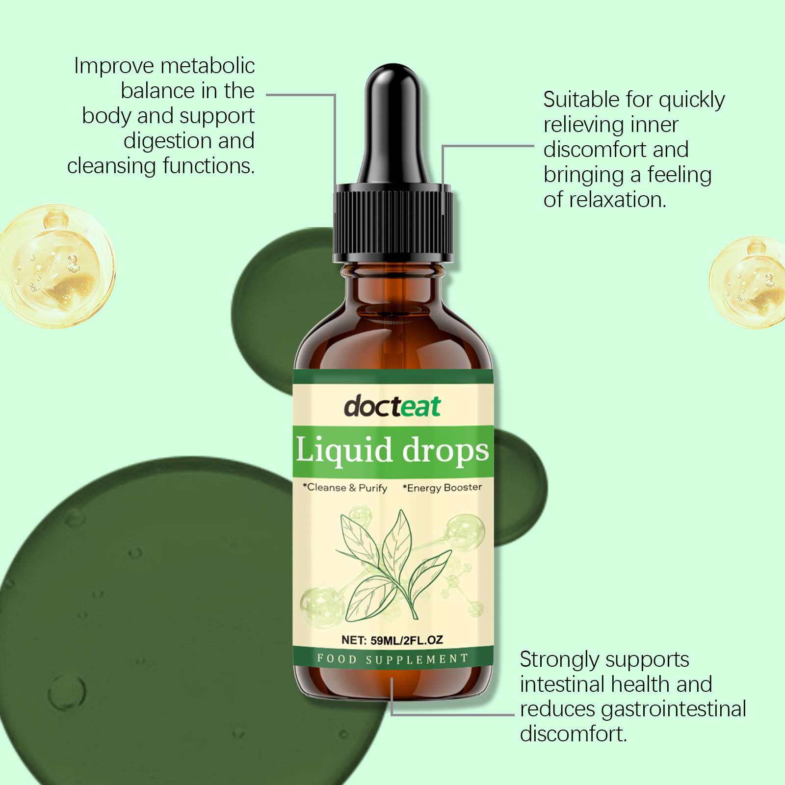 Docteat Chlorophyll Supplement Drops, Body Cleansing Care Gentle Nourishing Body Care Supplement Drops