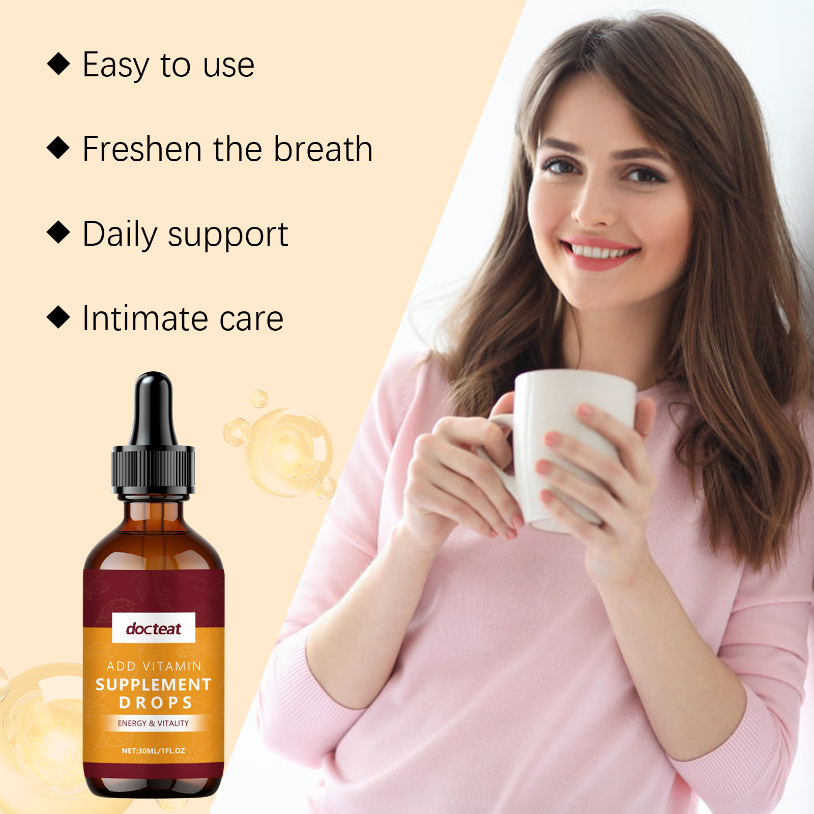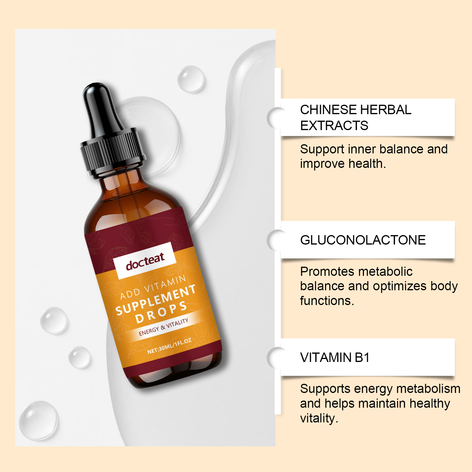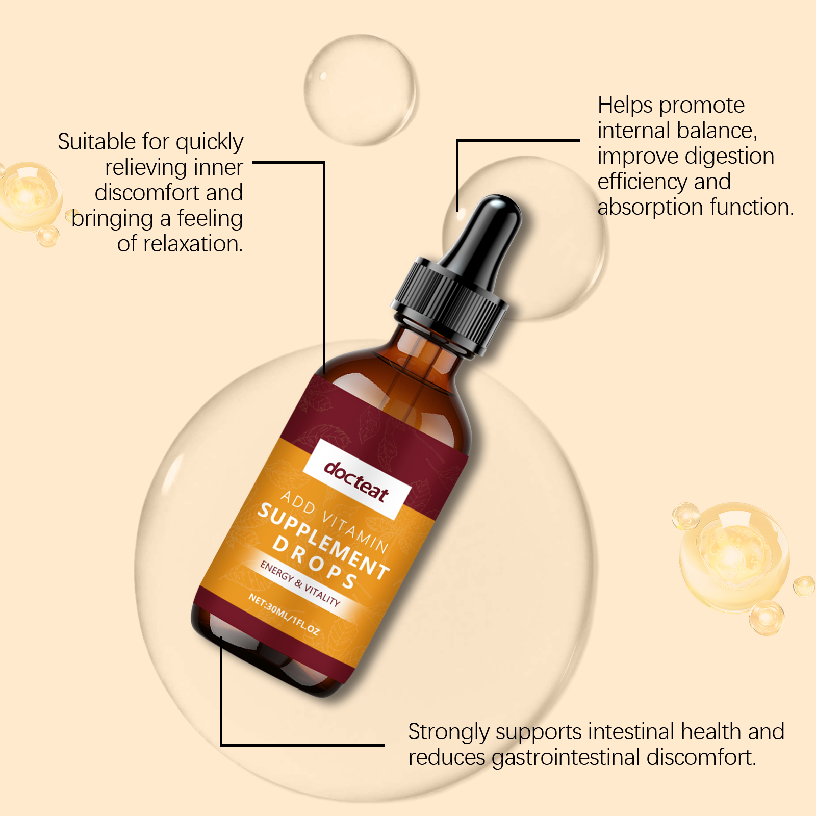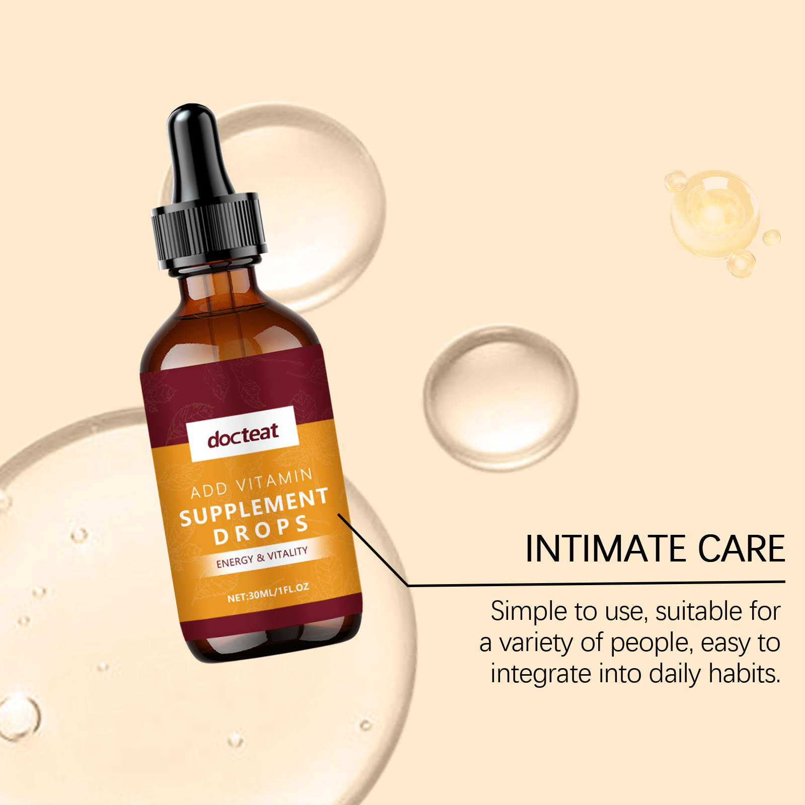 Docteat Vitamin Supplement Drops, Vitamin Essence Gentle Care Body Nourishing Care Drops