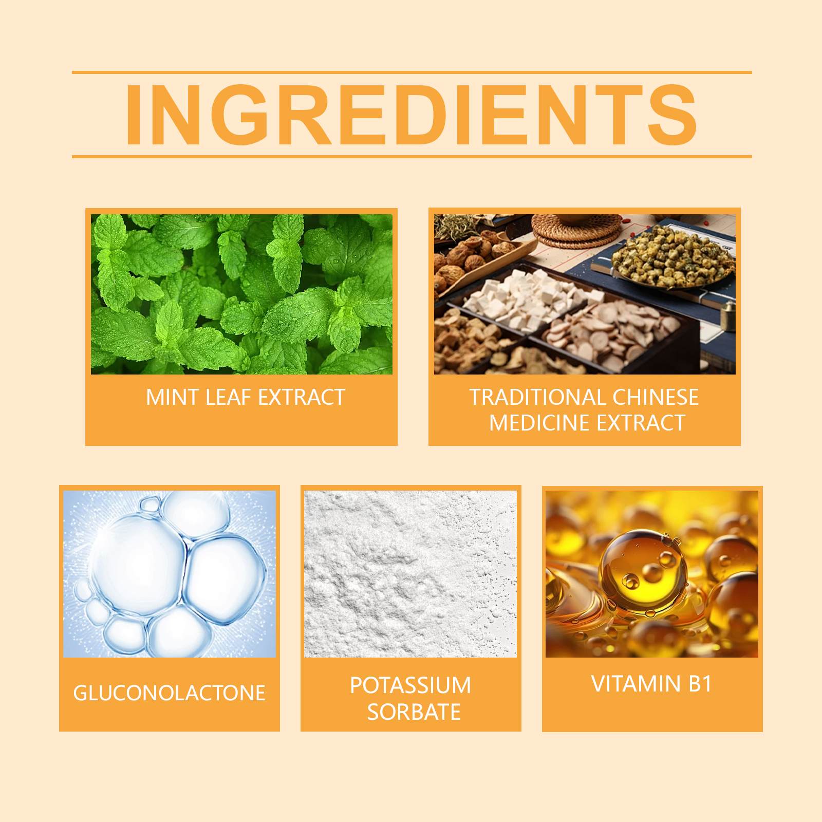 | 成分 | 薄荷提取液、中药提取物、葡萄糖酸内脂 |