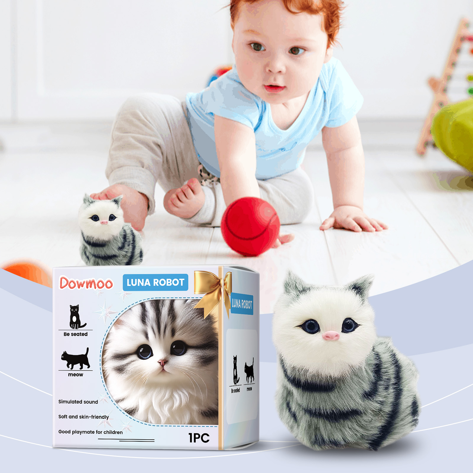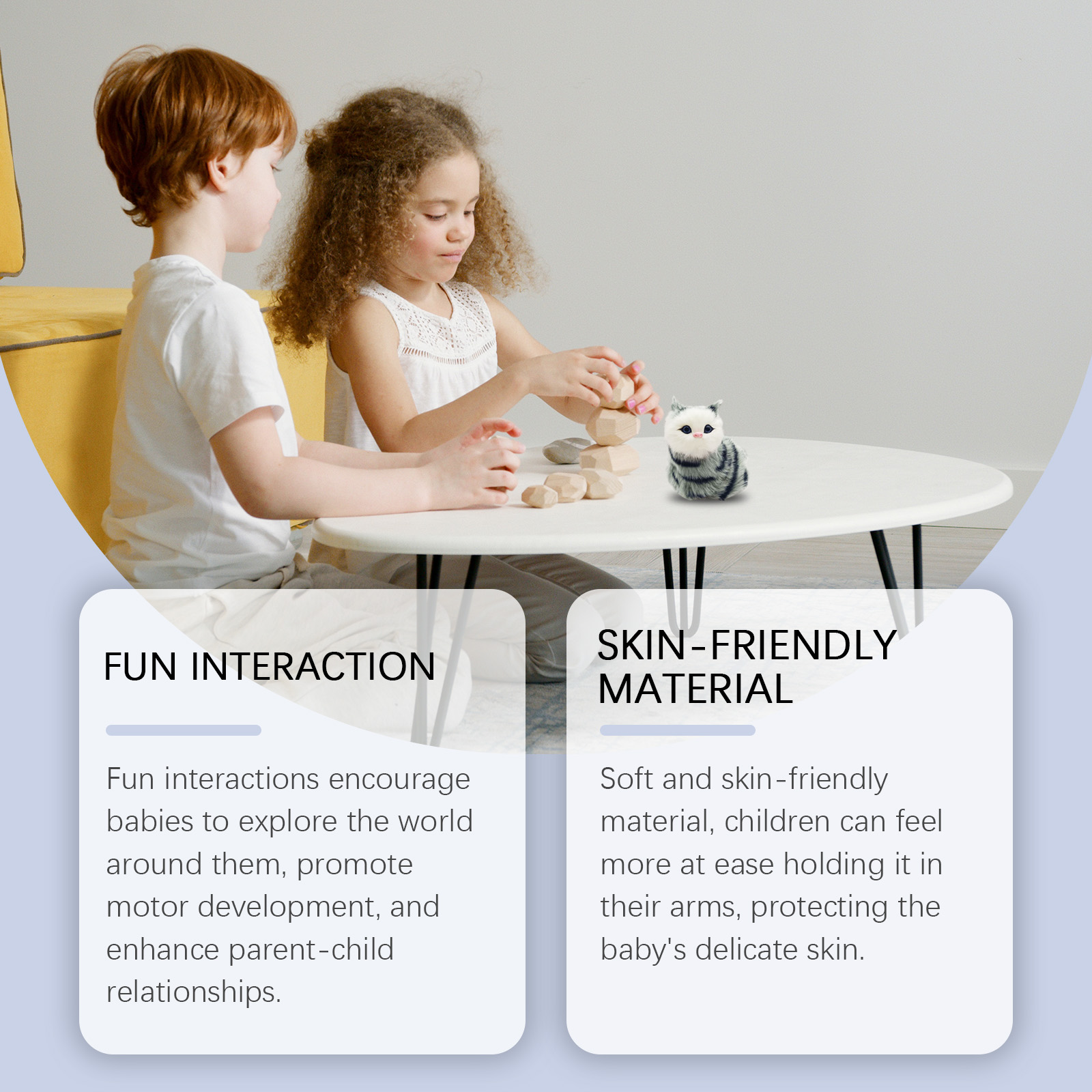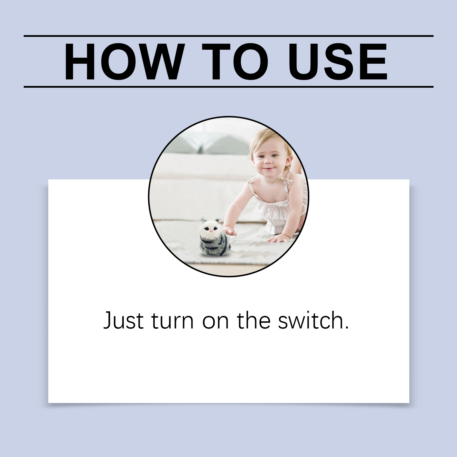 我们的玩具猫咪含有塑料、毛绒。它可以鼓励宝宝探索周围的世界,促进运动发育,增进亲子关系。它的使用方法很简单:只需打开开关。并且采用柔软而亲肤的材质,小孩子把它抱在怀里可以更安心,保护宝宝娇嫩的肌肤。